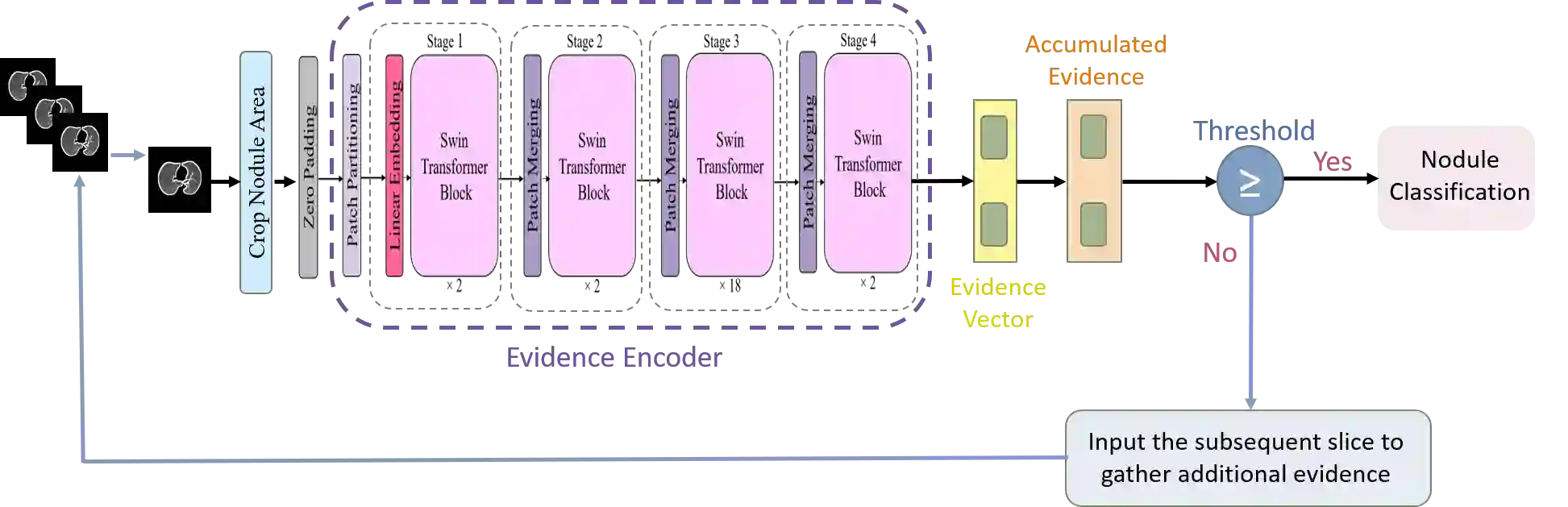 Drawing inspiration from the primate brain's intriguing evidence accumulation process, and guided by models from cognitive psychology and neuroscience, the paper introduces the NYCTALE framework, a neuro-inspired and evidence accumulation-based Transformer architecture. The proposed neuro-inspired NYCTALE offers a novel pathway in the domain of Personalized Medicine (PM) for lung cancer diagnosis. In nature, Nyctales are small owls known for their nocturnal behavior, hunting primarily during the darkness of night. The NYCTALE operates in a similarly vigilant manner, i.e., processing data in an evidence-based fashion and making predictions dynamically/adaptively. Distinct from conventional Computed Tomography (CT)-based Deep Learning (DL) models, the NYCTALE performs predictions only when sufficient amount of evidence is accumulated. In other words, instead of processing all or a pre-defined subset of CT slices, for each person, slices are provided one at a time. The NYCTALE framework then computes an evidence vector associated with contribution of each new CT image. A decision is made once the total accumulated evidence surpasses a specific threshold. Preliminary experimental analyses conducted using a challenging in-house dataset comprising 114 subjects. The results are noteworthy, suggesting that NYCTALE outperforms the benchmark accuracy even with approximately 60% less training data on this demanding and small dataset.