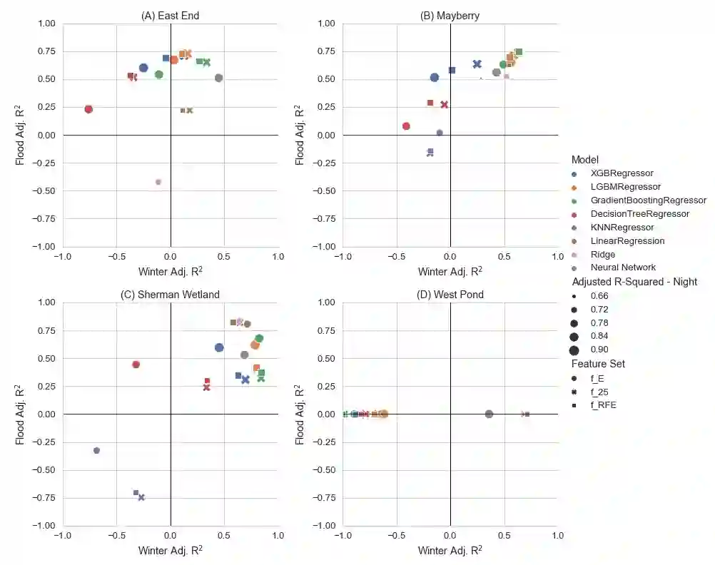 翻译:更深入地了解蒸发的驱动因素及其组成部分(蒸发和蒸发)的建模,对于未来数十年全球水资源的监测和管理具有重大意义。在这项工作中,我们开发了一个框架,从候选一组中找出最佳的机器学习算法,选择最佳的预测特征,以及其远征的分级特征,以便预测准确性。我们的实验将4个湿地地点的3个不同的特征集作为输入8个候选机器学习算法的投入,提供了96套实验配置。鉴于参数数量之多,我们的结果有力地证明,尽管所研究的所有湿地地点有相似之处,但没有在所有这些地点设置任何独特的最佳机器学习算法或特征。在研究特征重要性时发现的一个重要发现是,甲烷通量(其与蒸发热量的关系一般没有研究)可能有助于进一步理解生物物理过程。