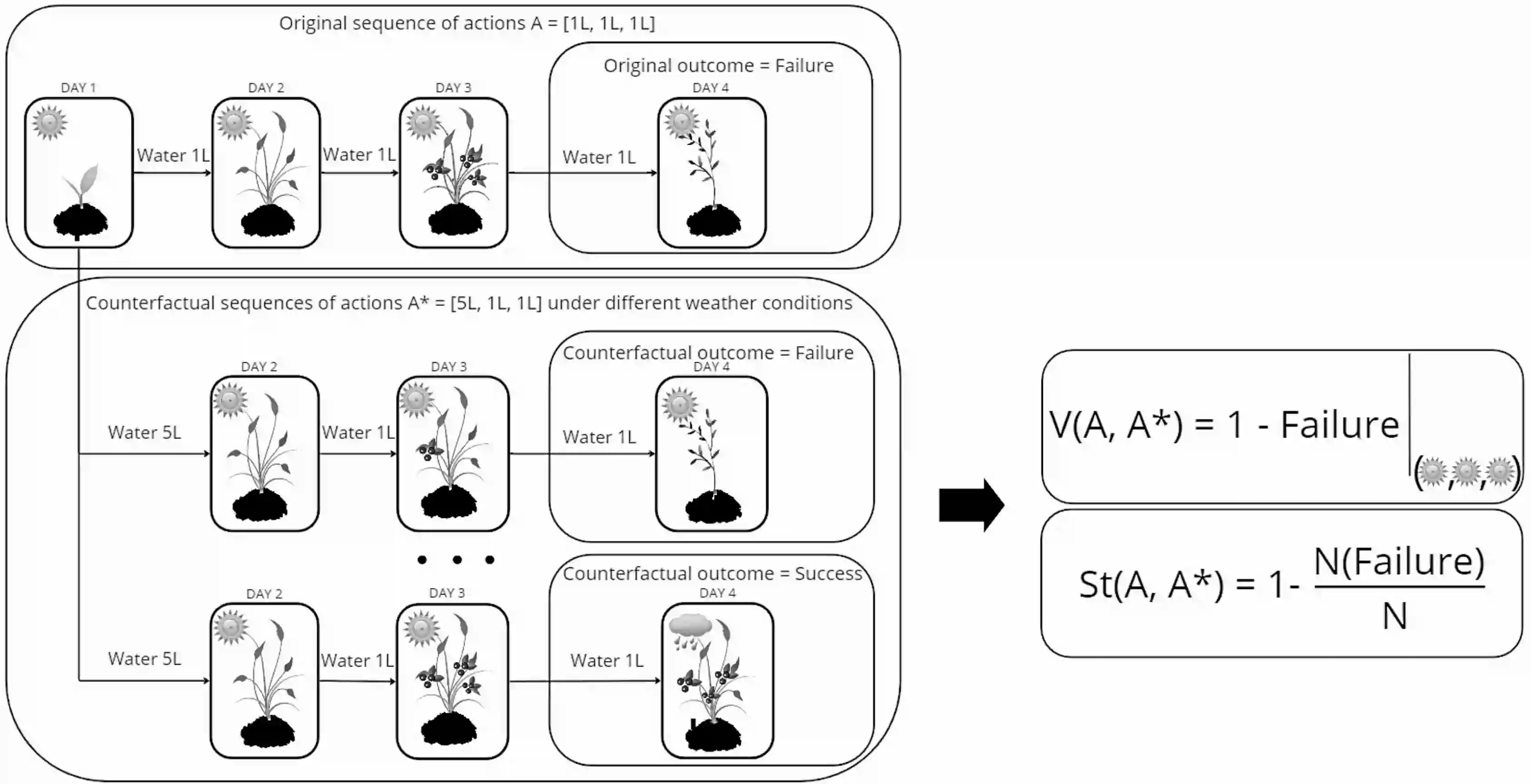 Understanding how failure occurs and how it can be prevented in reinforcement learning (RL) is necessary to enable debugging, maintain user trust, and develop personalized policies. Counterfactual reasoning has often been used to assign blame and understand failure by searching for the closest possible world in which the failure is avoided. However, current counterfactual state explanations in RL can only explain an outcome using just the current state features and offer no actionable recourse on how a negative outcome could have been prevented. In this work, we propose ACTER (Actionable Counterfactual Sequences for Explaining Reinforcement Learning Outcomes), an algorithm for generating counterfactual sequences that provides actionable advice on how failure can be avoided. ACTER investigates actions leading to a failure and uses the evolutionary algorithm NSGA-II to generate counterfactual sequences of actions that prevent it with minimal changes and high certainty even in stochastic environments. Additionally, ACTER generates a set of multiple diverse counterfactual sequences that enable users to correct failure in the way that best fits their preferences. We also introduce three diversity metrics that can be used for evaluating the diversity of counterfactual sequences. We evaluate ACTER in two RL environments, with both discrete and continuous actions, and show that it can generate actionable and diverse counterfactual sequences. We conduct a user study to explore how explanations generated by ACTER help users identify and correct failure.