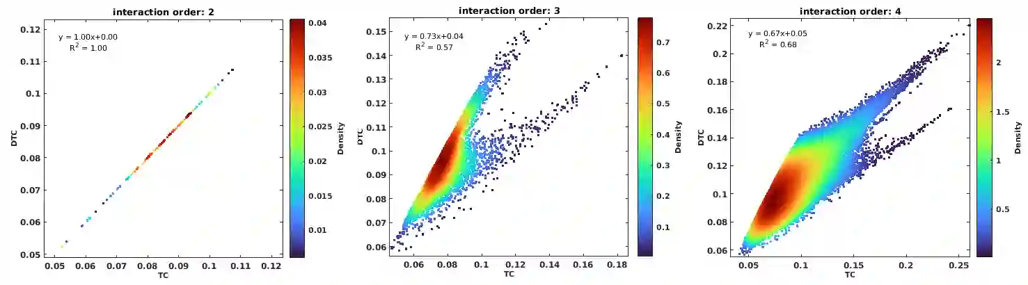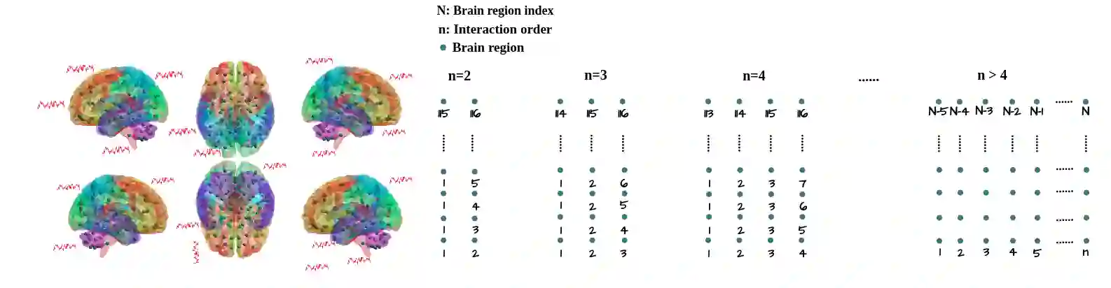 翻译:人脑区域之间的统计依赖通常使用成对的度量来估计,但这并不能捕捉更高阶的信息交互。探索高阶信息交互对于更好地理解人脑信息处理至关重要。为了解决这个问题,我们应用了多变量互信息, 特别是全相关和对偶全相关以揭示人脑中的高阶信息。在本文中,我们使用基于瑞尼(Renyi)熵的矩阵方法来估计这些度量,这种方法提供了一种直接且易于解释的方法,不受多元时间序列概率分布函数的直接假设的限制。我们将这些度量应用于静息态fMRI数据以研究人脑的高阶交互。我们的结果表明, 随着交互阶数的增加,所捕捉到的高阶信息交互逐渐增加。此外,我们还观察到对偶全相关和全相关之间的相关性随着交互阶数的增加而逐渐增加。另外,对偶全相关值与全相关值之间的显著性,也表明人脑在静息状态下呈现出协同优势。
