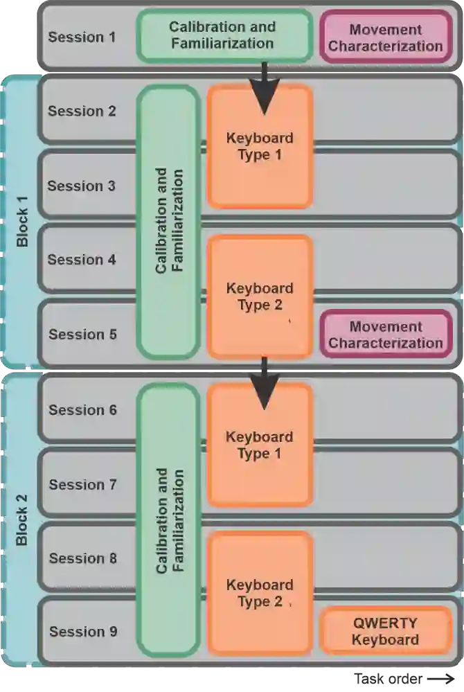 翻译:这项研究为个人化键盘生成引入了一种基于个人化键盘生成能力的方法,其中个人自己的移动和人-计算机互动数据被用于自动计算个性化虚拟键盘布局。我们的方法结合了多方向点选择任务,以辨别光标在时间、距离和方向上的控制特征。特征描述被自动用于开发一种计算高效键盘布局,通过捕捉方向限制和偏好,确定每个用户的移动能力的优先次序。我们用惯性感测和面部电感学作为一种访问方法,在16名无运动障碍的参与者参与的一项研究中评估了我们的方法,结果导致使用个性化键盘(52.0位/分钟)与一般优化键盘(47.9位/分钟)相比通信率大幅提高。我们的结果表明,在设计虚拟界面时,能够有效地描述个人设计个性化键盘用于改进通信的能力。这项工作强调了将用户的机动能力整合的重要性。