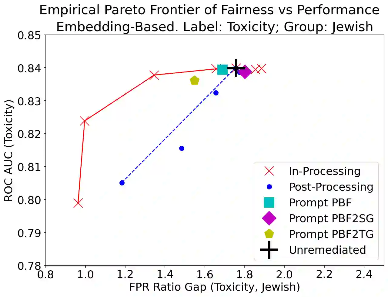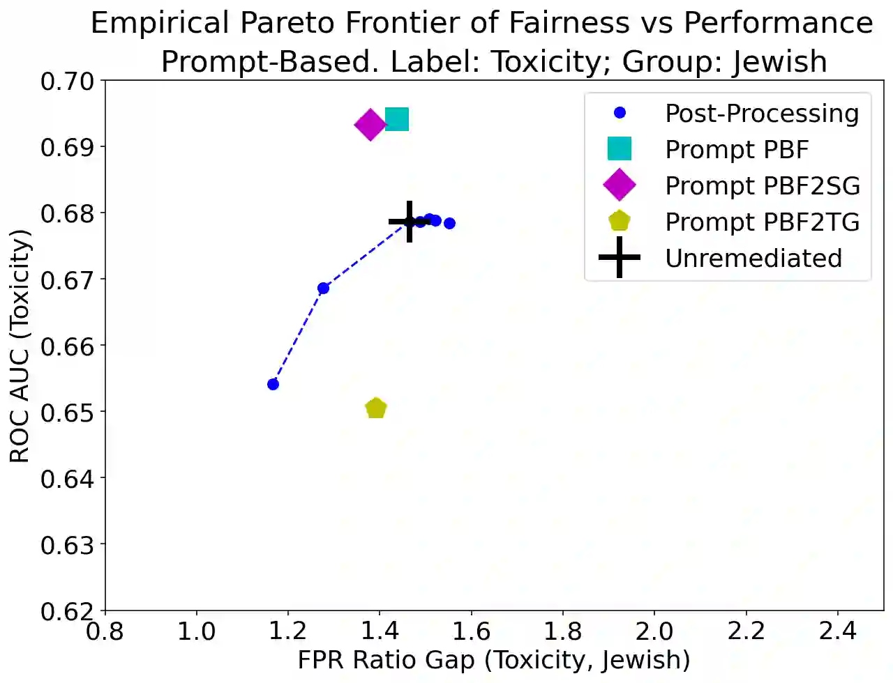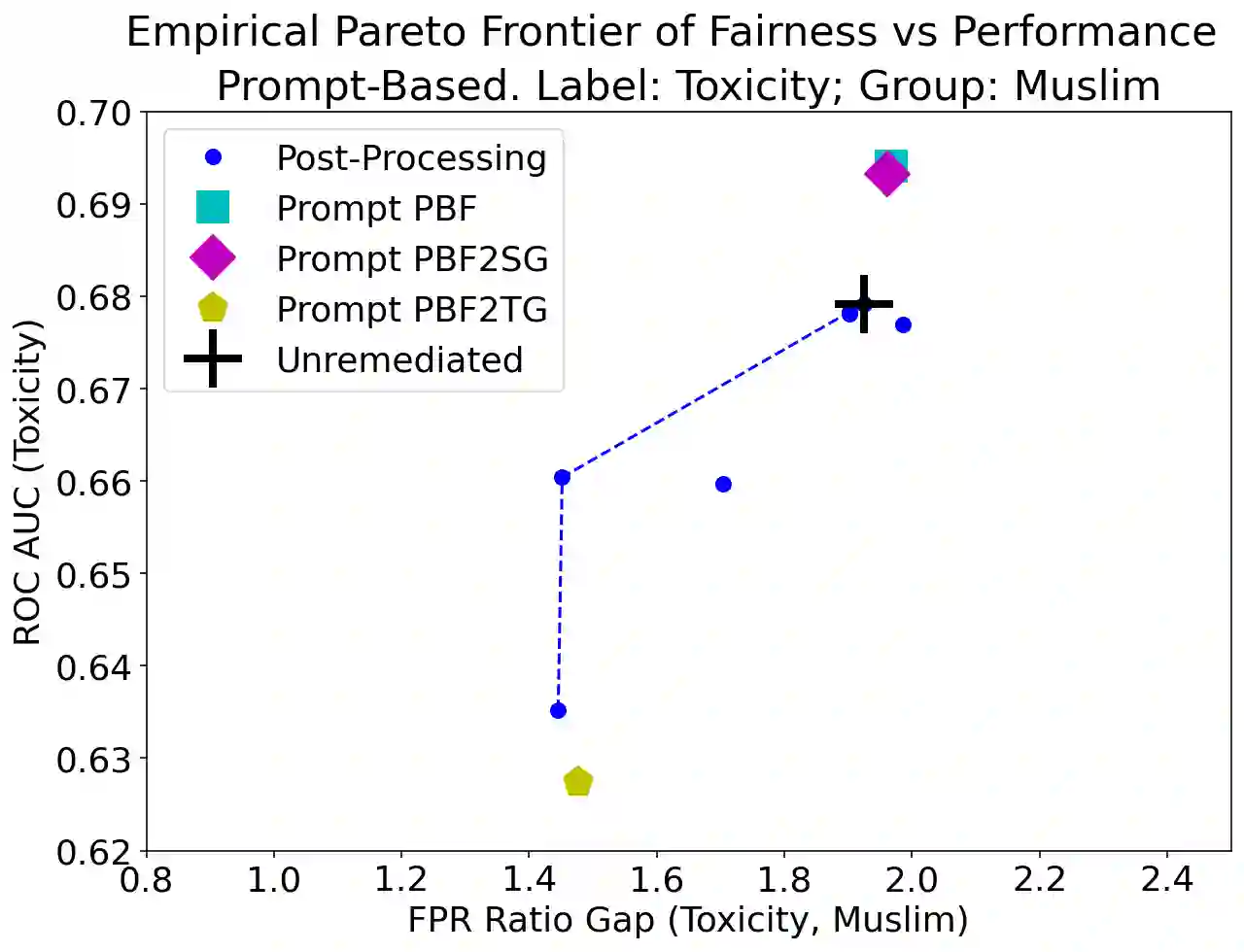 Classifiers are used throughout industry to enforce policies, ranging from the detection of toxic content to age-appropriate content filtering. While these classifiers serve important functions, it is also essential that they are built in ways that minimize unfair biases for users. One such fairness consideration is called group fairness, which desires that different sub-population of users receive equal treatment. This is a well-studied problem in the context of 'classical' classifiers. However, the emergence of prompt-based language model (LM) decision making has created new opportunities to solve text-based classification tasks, and the fairness properties of these new classifiers are not yet well understood. Further, the `remediation toolkit' is incomplete for LM-based decision makers and little is understood about how to improve decision maker group fairness while maintaining classifier performance. This work sets out to add more tools to that toolbox. We introduce adaptations of existing effective approaches from the classical classifier fairness to the prompt-based classifier space. We also devise simple methods that take advantage of the new structure of prompt-based decision makers and operate at the prompt level. We compare these approaches empirically on real data. Our results suggest that adaptations of approaches that are effective for classical classifiers remain effective in the LM-based classifier environment. However, there is room for further exploration of prompt-based remediation methods (and other remediation methods that take advantage of LM structure).
