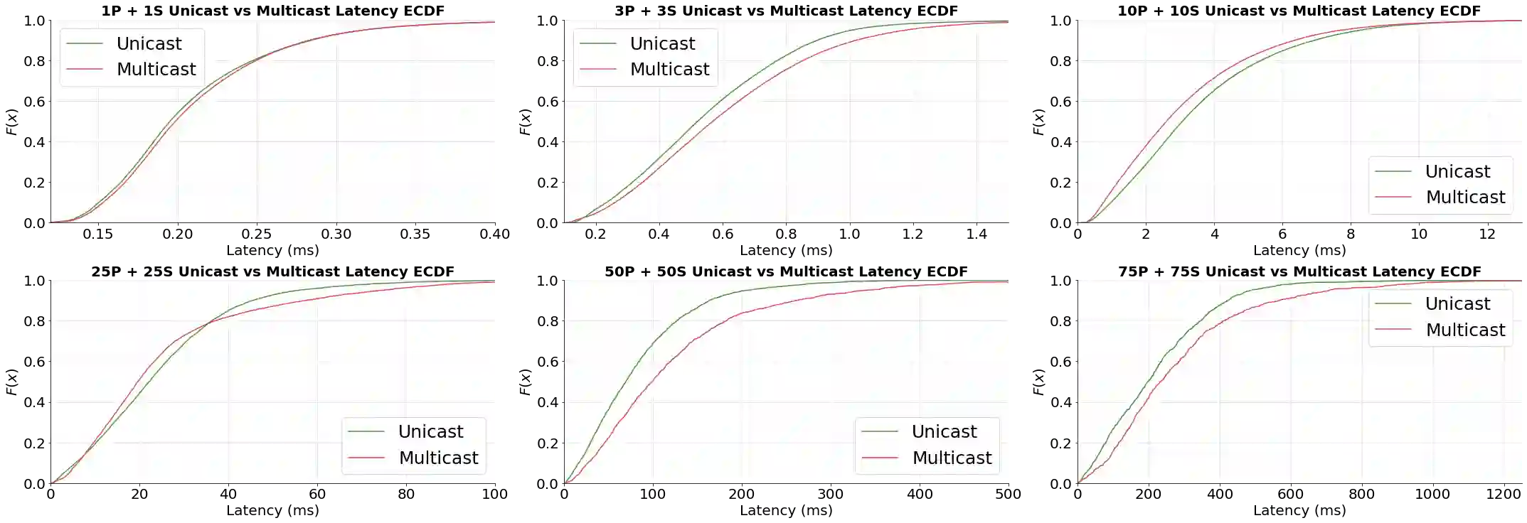 翻译:数据分发处(DDS)是高性能和实时系统的一个目标管理小组标准,DDS是一种基于出版订阅通讯模式的以数据为中心的中间软件,用于许多任务关键系统,甚至安全关键系统,如空中交通管制和机器人操作系统(ROS2)。 这项研究旨在确定多播的使用如何影响不同数目的参与者(出版商和订户)DDS通信的业绩。结果显示,为多播通讯配置的DDS在高负荷(参与者人数多于为单发通讯配置的DDS)下的表现可能更差。这种反直观的结果使得研究人员和从业人员更需要清楚多播通讯如何在网络上运作的细节。