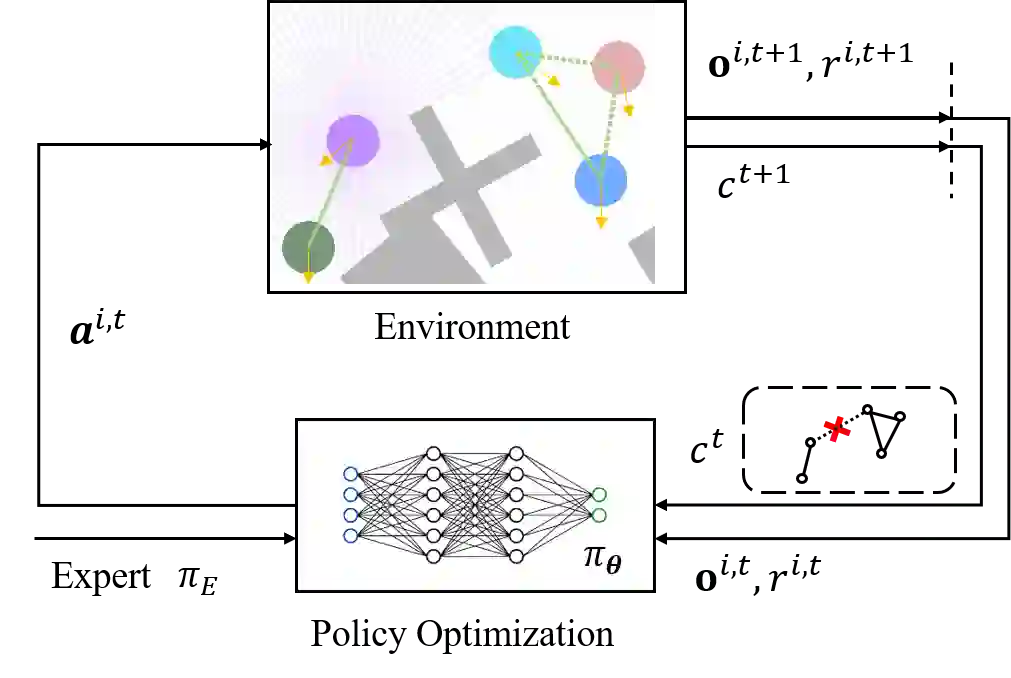 翻译:多机器人连接维护多机器人导航问题在多机器人应用中具有挑战性。 这项工作调查了如何在未知环境中驾驶多机器人团队,同时保持连通性。 我们提出一种强化学习(RL)方法,以制定分散化的政策,由多个机器人共享。 鉴于范围感应测量和其他机器人的位置,该政策旨在生成导航控制指令并维护机器人团队的全球连通性。 我们把连通问题作为制约因素纳入RL框架,并引入行为克隆以减少政策优化的探索复杂性。 该政策优化了由多个机器人在随机模拟情景中收集的所有过渡数据。 我们通过比较连接限制和行为克隆的不同组合来验证拟议方法的有效性。 我们还表明,我们的政策可以在模拟和克隆机器人实验中概括为看不见的情形。