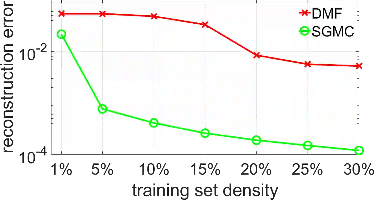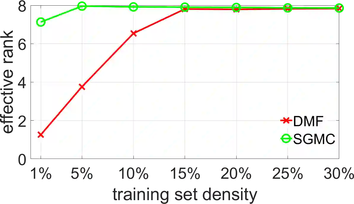 翻译:深母体因子化(DMF)是解决矩阵完成问题的一种新办法,最近的工作已经确定,在DMF模式中,梯度下降会导致对回收的矩阵的等级进行隐含的正规化;在这项工作中,我们通过光谱几何学透镜来解释DMF模式;这使我们能够在不打破DMF结构的情况下纳入明确的正规化,从而享受两个世界的最佳条件;特别是,我们侧重于行和(或)列之间基本的几何或地貌关系中的矩阵完成问题;这种关系在许多应用中出现的矩阵完成问题中普遍存在,例如推荐系统和药物目标互动。我们的贡献使得DMF模式能够利用这些关系,使它们在实际基准上具有竞争力,同时展示深线网络的首批成功应用之一。