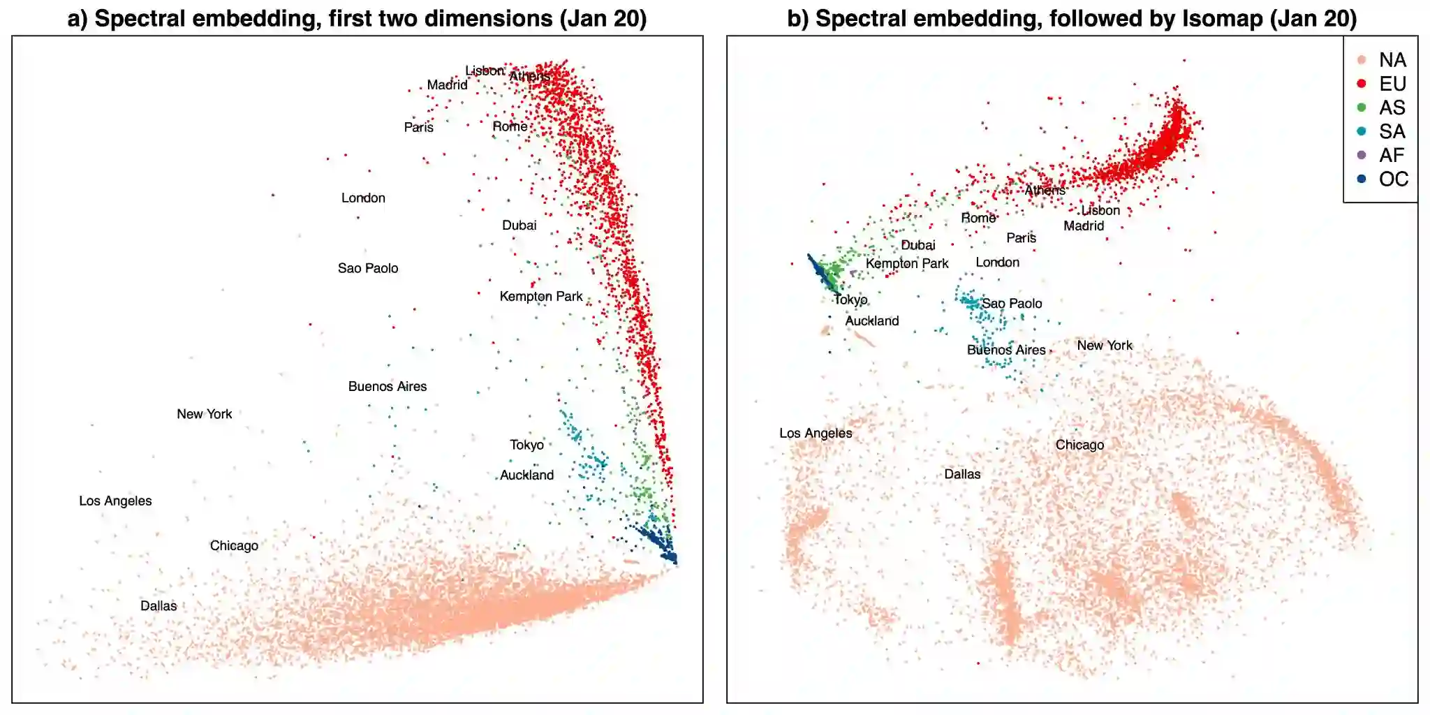 翻译:根据图表或类似的矩阵,我们考虑的是恢复节点之间真实距离概念的问题,也就是其真实位置的问题。通过对通用潜伏位置模型的多重几何学进行新的洞察,我们表明这可以分两个步骤实现:矩阵乘数化,然后是非线性维度的减少。这种结合是有效的,因为第一步获得的点云接近一个将潜在距离编码为大地测量距离的方块。因此,一个非线性维度减少工具,近似大地测量距离,可以恢复潜伏位置,直至简单转变。我们详细介绍了光谱嵌入的情况,然后是伊索马普,并为其他技术组合提供令人鼓舞的实验证据。