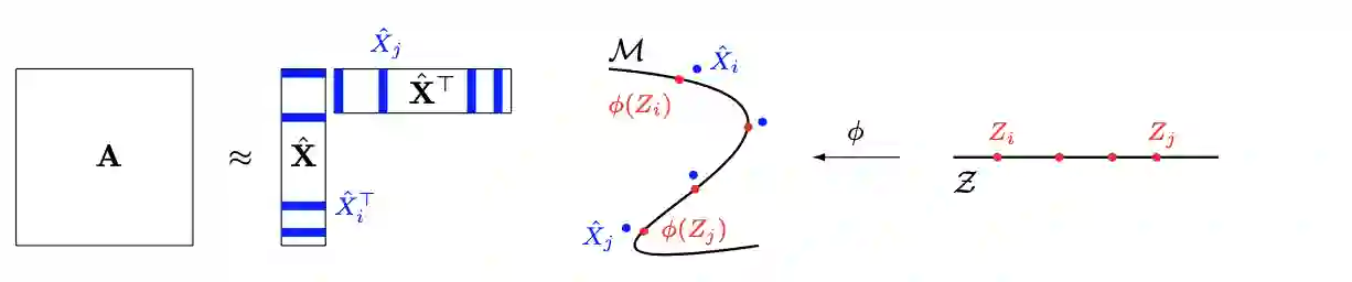 Given a graph or similarity matrix, we consider the problem of recovering a notion of true distance between the nodes, and so their true positions. Through new insights into the manifold geometry underlying a generic latent position model, we show that this can be accomplished in two steps: matrix factorisation, followed by nonlinear dimension reduction. This combination is effective because the point cloud obtained in the first step lives close to a manifold in which latent distance is encoded as geodesic distance. Hence, a nonlinear dimension reduction tool, approximating geodesic distance, can recover the latent positions, up to a simple transformation. We give a detailed account of the case where spectral embedding is used, followed by Isomap, and provide encouraging experimental evidence for other combinations of techniques.