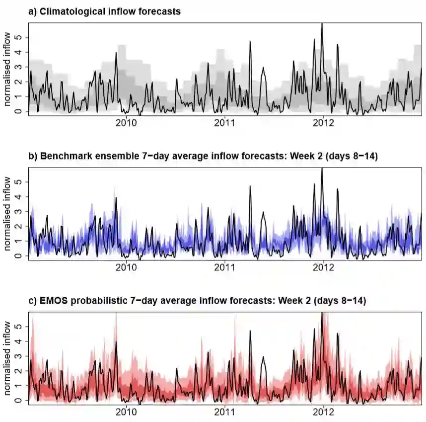 翻译:水流预测在水力水库管理方面发挥着必不可少的作用。预测有助于操作者提前安排发电时间,以尽量扩大经济价值,减轻下游洪水风险,并满足环境要求。运行流量预测的地平面往往限制在距未来约2周的距离,这标志着确定性天气预报的可预测性障碍。次季节至季节(S2S)范围的可靠流量预测将使操作者能够采取积极主动的行动,减轻不利天气条件的风险,从而改善水管理和增加收入。本研究报告概述了利用苏格兰高原的案例研究库获得熟练的S2S2S流入预测的方法。我们通过对观察到的流入S2S2的直线回归模型进行培训,产生加速的流量预测。欧洲中度天气预报中心(ECMWF)的混合降水量预测预测往往具有可预测性。随后,通过综合模型输出的处理技术来得出校准S2S2S概率预测,从而改进流量预测。我们发现,S2S2系统流量预测的稳定性预测在苏格兰高地进行,在预测中采用更精确的预测,在预测中,在预测中采用更精确的时期进行,在预测中,在预测中,在预测中进行更精确的预测,在预测中进行。在预测中,在预测中,在预测中采用更精确的周期中进行,在预测是,在预测是,在预测,在预测中进行,在预测中进行,在预测,在预测中,在预测中,在预测中,在预测中进行更精确到预测的期间进行,在预测,在预测的周期中,在预测是比前进行。