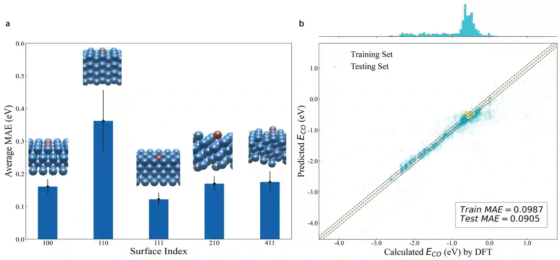 翻译:脑电图网络(GNNs)吸引了物质科学家越来越多的关注,并展示了在结构和特性之间建立联系的高度能力;然而,由于作为投入而提供的只是不松动结构,很少有GNN模型能够预测松动配置的热力特性,并有可接受的误差;在这项工作中,我们根据DimeNet+++和混合物密度网络开发了一个多任务(MT)结构,以改进这项任务的绩效;用CO对基于Cu的单原子合金催化剂的吸附作为示例,我们表明,我们的方法可以可靠地估计CO吸收能量,从最初的CO吸附结构中得出0.087 eV的绝对误差,而没有代价高昂的第一条原则计算;此外,与其他最先进的GNNN方法相比,我们模型展示了在预测以未知的子表层表面或剂量物种建造的外部配置的催化性能时,提高了一般化能力。我们表明,拟议的MT GNNN战略可以促进催化剂的发现。