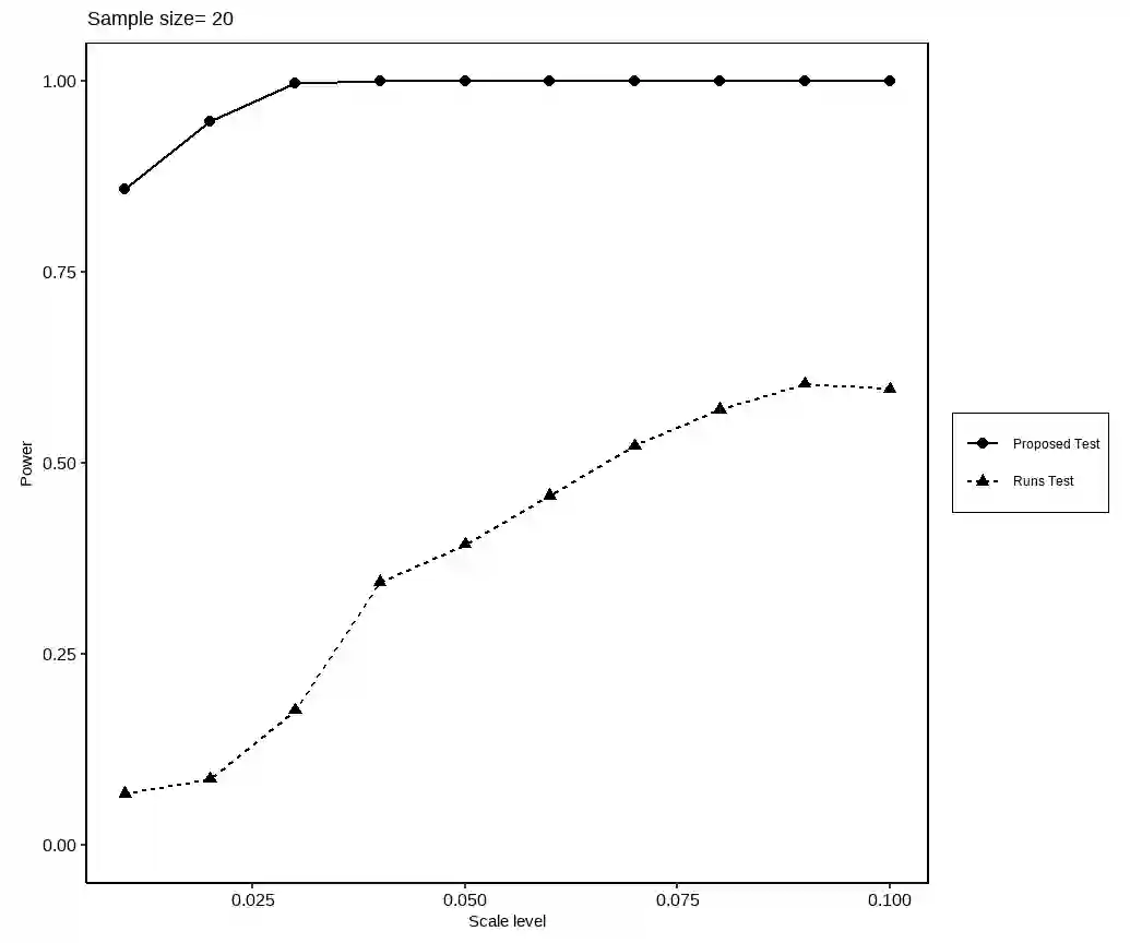 In many circumstances given an ordered sequence of one or more types of elements/ symbols, the objective is to determine any existence of randomness in occurrence of one of the elements,say type 1 element. Such a method can be useful in determining existence of any non-random pattern in the wins or loses of a player in a series of games played. Existing methods of tests based on total number of runs or tests based on length of longest run (Mosteller (1941)) can be used for testing the null hypothesis of randomness in the entire sequence, and not a specific type of element. Additionally, the Runs Test tends to show results contradictory to the intuition visualised by the graphs of say, win proportions over time due to method used in computation of runs. This paper develops a test approach to address this problem by computing the gaps between two consecutive type 1 elements and thereafter following the idea of "pattern" in occurrence and "directional" trend (increasing, decreasing or constant), employs the use of exact Binomial test, Kenall's Tau and Siegel-Tukey test for scale problem. Further modifications suggested by Jan Vegelius(1982) have been applied in the Siegel Tukey test to adjust for tied ranks and achieve more accurate results. This approach is distribution-free and suitable for small sizes. Also comparisons with the conventional runs test shows the superiority of the proposed approach under the null hypothesis of randomness in the occurrence of type 1 elements.