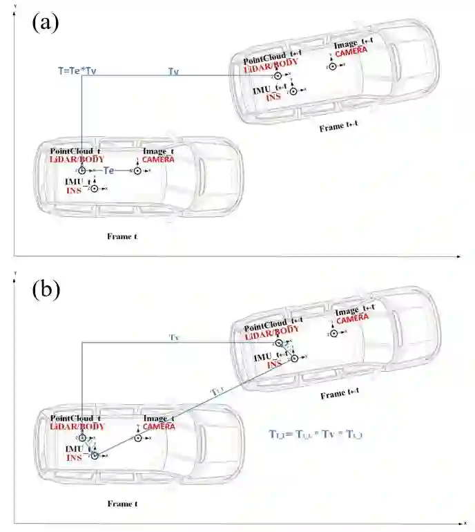 翻译:虽然大多数辅助和自主驱动系统广泛使用照相机和激光成像仪,但只提议了为数不多的工程,将专门用于在线传感器数据聚合的照相机和激光成像仪和激光成像仪的时间同步和外部校准结合起来。时间和空间校准技术面临着缺乏相关性和实时的挑战。在本文中,我们引入了成像估计模型和环境强力线特征提取,以提高数据聚合和即时在线校正能力的相关性。动态消除目标旨在寻求最佳政策,考虑到相邻时点云匹配的对应性。搜索优化进程旨在提供精确的参数,同时计算准确和高效。为展示这种方法的效益,我们用地面事实价值来评估该方法。在在线实验中,我们的方法比时间校准的软性同步方法提高了38.5 ⁇ 的准确度。在空间校准中,我们的方法自动纠正0.4秒内的扰动误差,并达到0.3度的精确度。这项工作可以促进传感器融合的研究和应用。