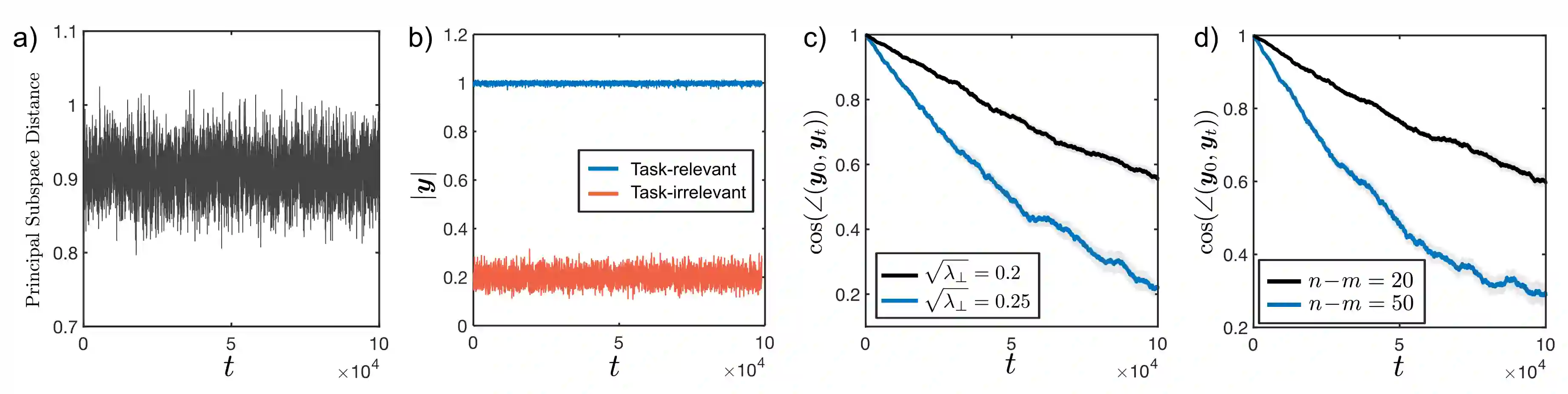 翻译:生物与人工学习者在生命周期中持续暴露于数据流与经验之中,必须不断适应、学习或选择性地忽略持续输入。近期研究发现,即使行为表现保持稳定,底层神经表征仍可能随时间逐渐变化,这一现象被称为表征漂移。研究可能导致漂移的不同数据源与噪声来源,对于理解神经系统的终身学习至关重要。然而,目前仍缺乏跨架构与学习规则的漂移系统性研究,及其与任务关联性的探讨。本文在在线学习框架下,将漂移表征为数据分布的函数,并特别证明:智能体在特定情境中学会忽略的任务无关刺激所诱导的学习噪声,能够在任务相关刺激的表征中产生长期漂移。通过理论与仿真,我们在基于赫布学习的Oja规则与相似性匹配、以及应用于自编码器和监督式双层网络的随机梯度下降中均验证了这一现象。我们一致观察到,漂移速率随任务无关子空间中数据的方差与维度增加而上升。进一步研究表明,与高斯突触噪声产生的漂移相比,此机制在漂移的几何特性与维度依赖性上会产生不同的定性预测。总体而言,本研究将刺激结构、任务与学习规则与表征漂移相关联,可能为利用漂移作为揭示大脑底层计算过程的信号开辟新途径。