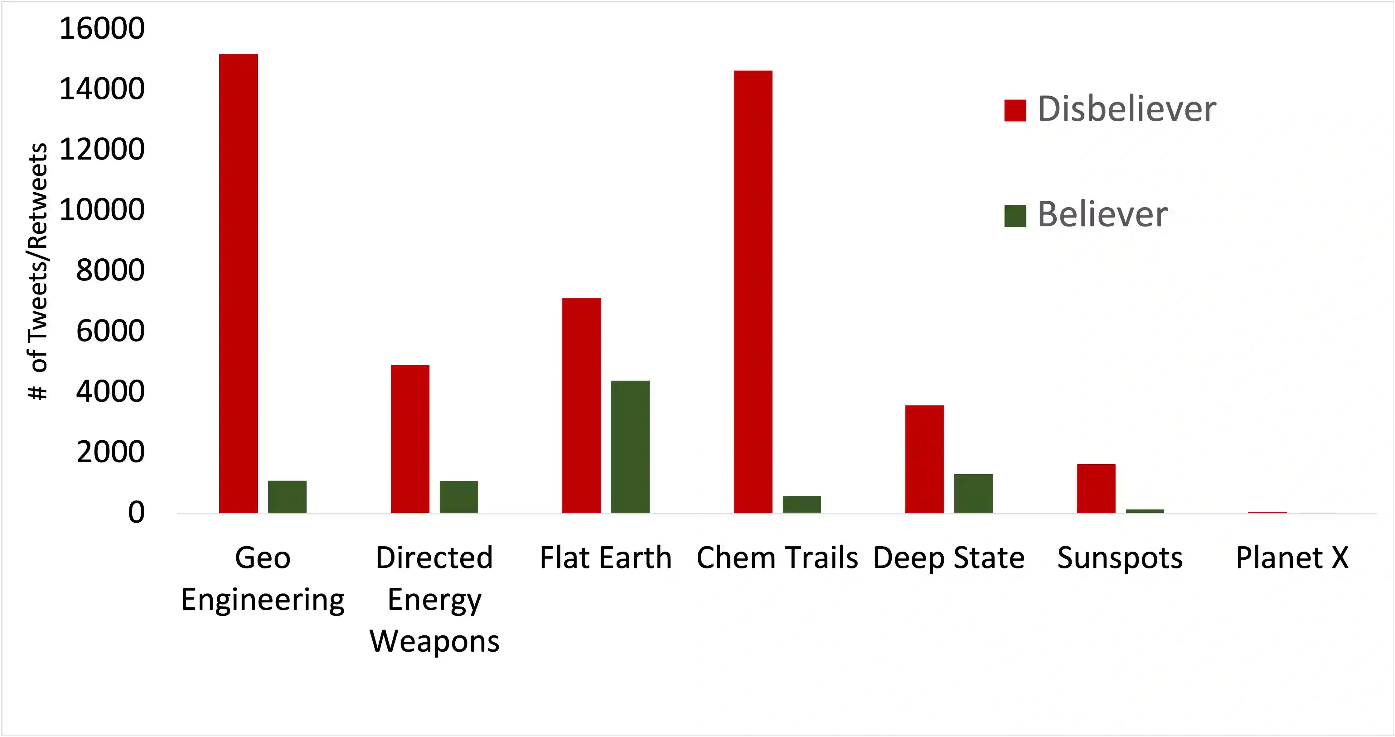 翻译:气候变化通信中新出现的关键挑战之一是阴谋理论的流行。本文讨论了在庞大的Twitter信息库中发现的与气候变化有关的一些主要阴谋理论。 我们使用最先进的姿态探测方法来发现阴谋理论是否在信仰气候变化的异教徒或信徒中更受欢迎。 然后我们分析哪一种阴谋理论比其他人更受欢迎,以及气候变化信仰的流行程度变化如何。 我们发现,对气候变化的不满者对与阴谋理论相关的关键词共享信息负有压倒多数的责任,而且并非所有的阴谋理论都得到平等分享。 最后,我们讨论了我们发现对气候变化通信的影响。