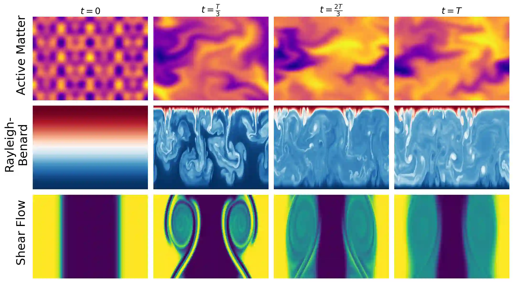 翻译:针对时空物理系统的机器学习方法主要集中于下一帧预测,其目标是学习系统时间演化的精确仿真器。然而,这些仿真器的训练计算成本高昂,且存在性能缺陷,例如在自回归推演过程中误差会不断累积。在本研究中,我们采取不同视角,关注预测下一帧之后更下游的科学任务,例如系统主导物理参数的估计。这些任务的准确性为评估模型表征的物理相关性提供了独特的可量化视角。我们评估了通用自监督方法在学习适用于下游科学任务的、基于物理的表征方面的有效性。令人惊讶的是,我们发现并非所有为物理建模设计的方法在这些任务上都优于通用的自监督学习方法,并且在潜在空间中学习的方法(例如联合嵌入预测架构,即JEPAs)优于那些优化像素级预测目标的方法。代码可在 https://github.com/helenqu/physical-representation-learning 获取。