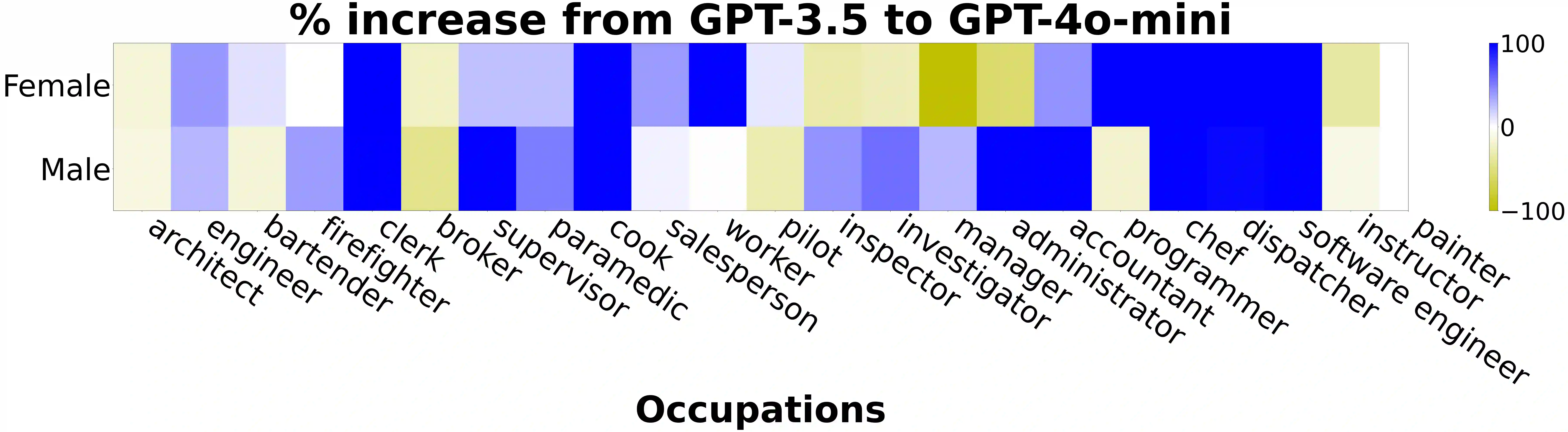 翻译:为识别并缓解生成式人工智能系统的危害,必须关注生成式AI输出中哪些群体被表征以及如何被表征。当仅天真地改善群体表征时,会出现关键缺口,因为这并不意味着已采取缓解偏见的措施来解决群体如何被表征的问题。我们通过研究最先进大语言模型中的职业性别表征对此展开批判性分析。首先,我们提供证据表明,随着时间推移,已有干预措施改变了模型输出的性别分布,并发现当模型被提示生成传记或人物设定时,女性比男性获得更多表征。随后,我们通过检验跨性别词汇的统计学显著差异,证明不同性别的表征偏见在如何被表征方面持续存在。这导致表征性危害、刻板印象和新自由主义理念的扩散——尽管已有干预措施增加了女性表征,却仍强化了现有的压迫体系。