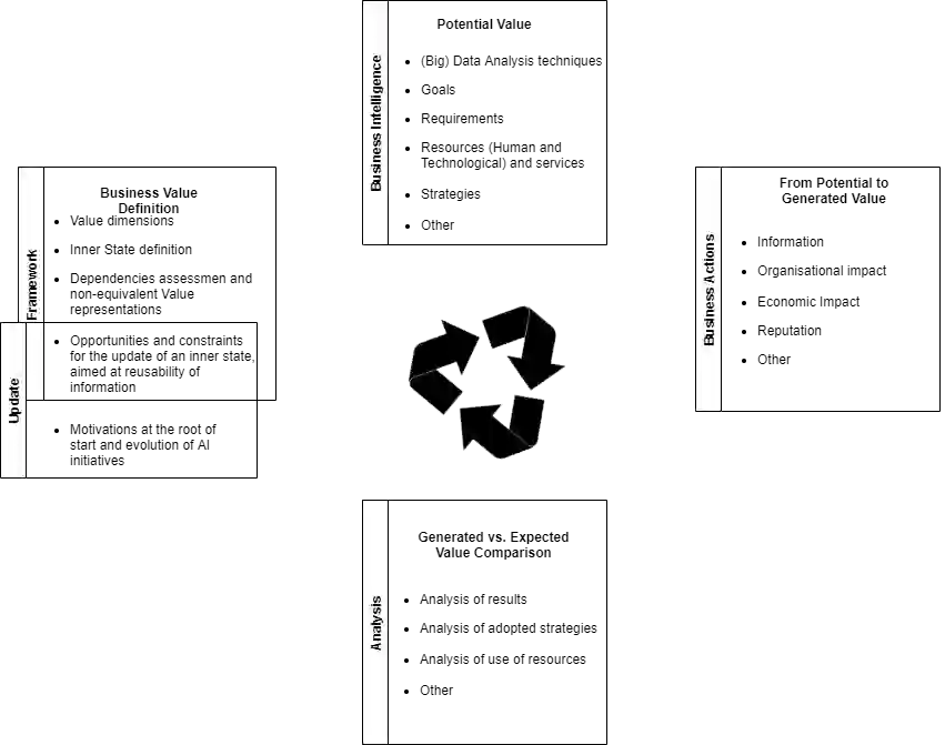 Artificial Intelligence (AI) provides practical advantages in different applied domains. This is changing the way decision-makers reason about complex systems. Indeed, broader visibility on greater information (re)sources, e.g. Big Data (BD), is now available to intelligent agents. On the other hand, such decisions are not always based on reusable, multi-purpose, and explainable knowledge. Therefore, it is necessary to define new models to describe and manage this new (re)source of uncertainty. This contribution aims to introduce a formal framework to deal with the notion of Value in the AI-BD context, embracing both the multiplicity of Value dimensions and the uncertainty in their visibility as the foundations for a dynamic, relational representation of Value. The framework design is based on abstract and highly scalable definitions to represent Value, even considering the interaction of different agents through comparison, combination, and update of states of knowledge. In such a model, both Big Data and different types of intelligence are considered as resources. The information extracted from data becomes a renewable resource if it can be transformed into knowledge, which is reusable beyond a specific scenario and, dynamically, over time. The focus on reusable knowledge is exploited in the relation between Human and Artificial intelligences, which is characterised by a "non-classical" form of uncertainty related to data observability. Finally, we identify applicative domains for future investigation, in order to address the impact of the dynamic behaviour of Value dimensions on strategies and decision-making, enhancing the adaptability and, hence, the sustainability of AI-BD initiatives over time.