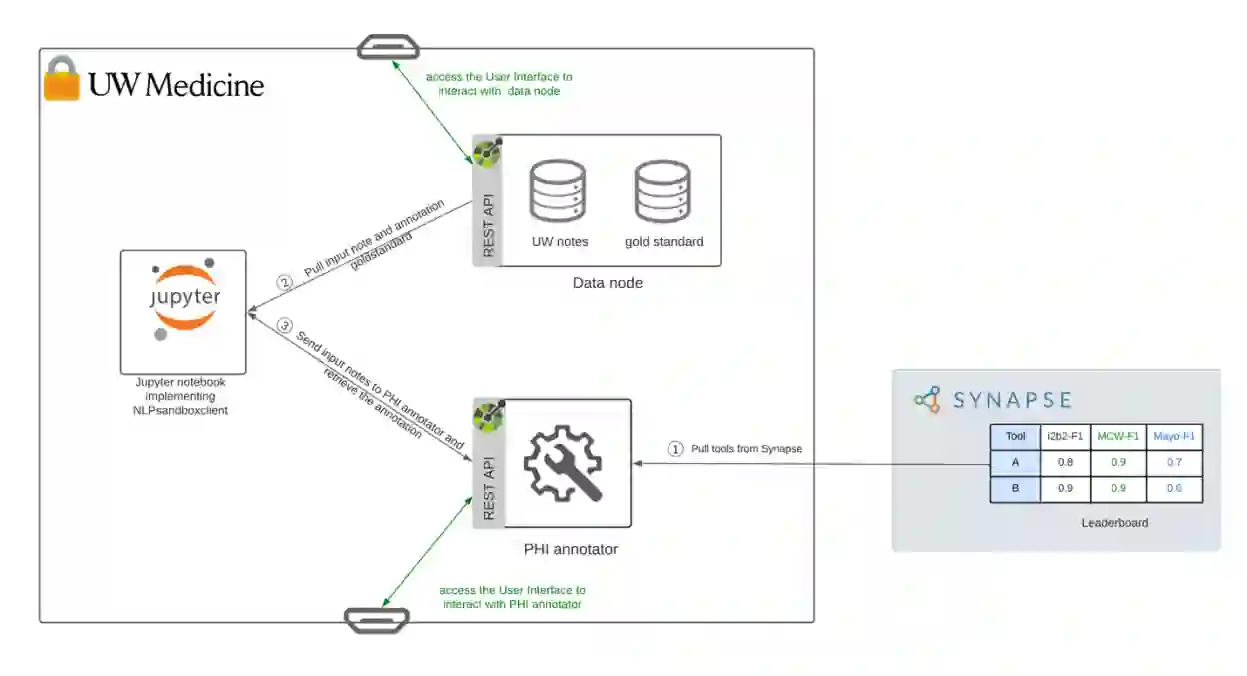 翻译:自然语言处理模型(NLP)临床文本去身份鉴定模型的评价取决于临床说明的提供情况,而临床说明往往因隐私问题而受到限制。NLP Sandbox是一种办法,通过采用一个联合的、模型到数据的方法,减轻国家语言处理模型缺乏的数据和评价框架的情况。通过采用一个联合的、模型到数据的方法,我们进一步验证了国家语言处理模型的性能,而无需分享多个机构的敏感数据。材料和方法。我们利用Synapse合作框架、集装箱化软件和OpenAPI发电机来建立NLP Sandbox (npsandbox.io) 。我们评估了两个最先进的NLP DSDB模型, 利用P Sandbox 模型和NL 定位重点说明重点说明模型,利用Philter 和 NURON;我们利用一个外部验证站点的数据进一步验证模型的模型的性能。我们展示了NLSDB箱的有用性,并提供了用户经验反馈。我们展示了使用NLSDB 模型来进行一个更贴的、更贴的NP Sandbox 标准的标准化的标准化模型和升级的标准化数据转换的模型和升级的模型, 数据化的模型和升级的SDL 将数据转换的模型用于SDMDSDSDMDDDDD DSDDD DSD D D D D D DSDSDS的模型用于S。