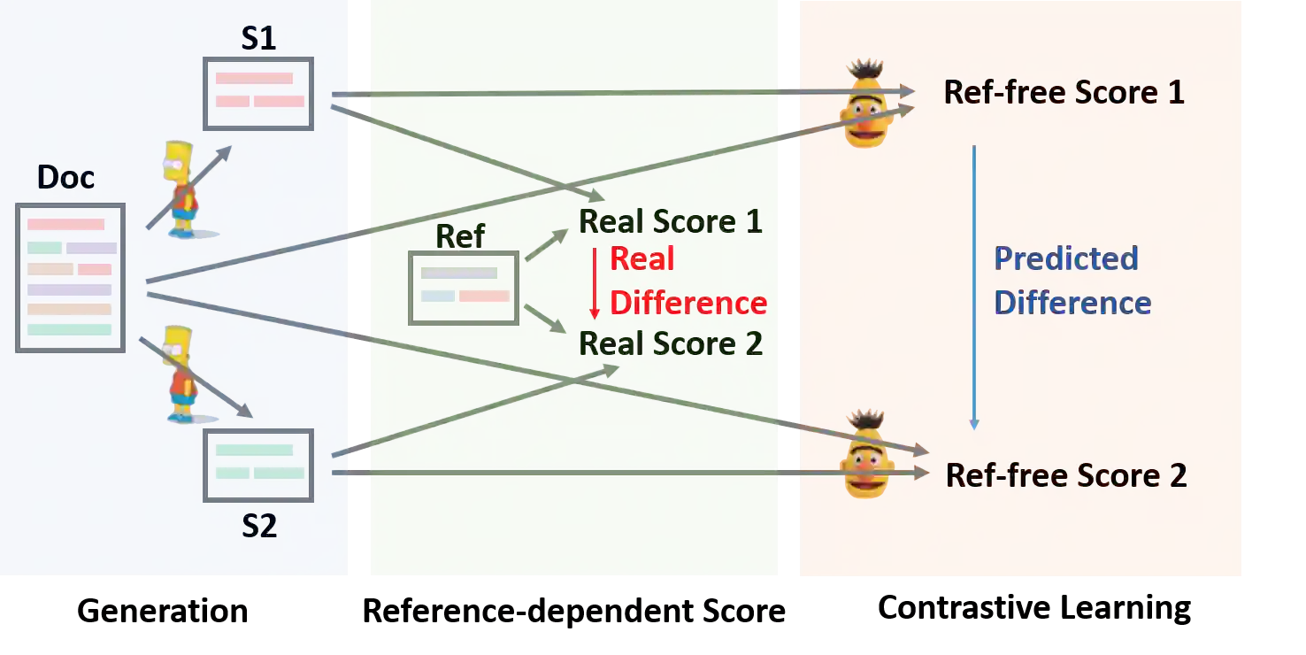 翻译:在本文中,我们提出了一个概念简单、经验上强大的抽象总结框架,即SimCLS。 SimCLS通过将文本生成作为无参考评价问题(即质量估计),并辅之以对比性学习,可以弥合目前占主导地位的顺序至顺序学习框架所产生的学习目标和评价指标之间的差距。实验结果表明,由于对现有顶层分层系统稍作修改,SimCLS能够大大改善现有顶级模型的性能。特别是,在CNN/DailyMail数据集中,与BART和PEGASUS w.r.t ROUGE-1相比,SimCLS可以绝对改进2.51和2.50,将最新业绩提高到新的水平。我们公开提供了我们的代码和结果:https://github.com/yixinL7/SimCLS。我们提出的模型的结果被应用到ExleaBoard平台,使研究人员能够更精确地理解我们的系统。