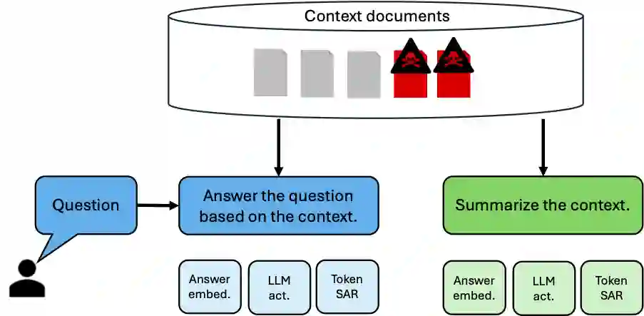 翻译:检索增强生成系统已成为日常生活中不可或缺的组成部分。无论是在互联网搜索引擎、电子邮件系统还是服务聊天机器人中,这些系统都基于上下文检索和大型语言模型的答案生成。随着其普及,安全漏洞也随之增加。攻击者日益聚焦于这些系统,并开发出各种入侵方法。操纵上下文文档是一种使攻击持续存在并影响所有用户的方式。因此,及早检测受损的对抗性上下文文档对安全至关重要。虽然监督方法需要大量标注的对抗性上下文,但我们提出了一种无监督方法,能够检测零日攻击。我们进行了一项初步研究,以展示对抗性上下文的合适指标。为此,生成器激活、输出嵌入以及基于熵的不确定性度量被证明是合适且互补的量。通过基本的统计离群值检测,我们提出并比较了它们的检测能力。此外,我们表明,攻击者想要操纵的目标提示并非成功检测所必需。而且,我们的结果表明,简单的上下文摘要生成在发现被操纵的上下文方面甚至可能更优。