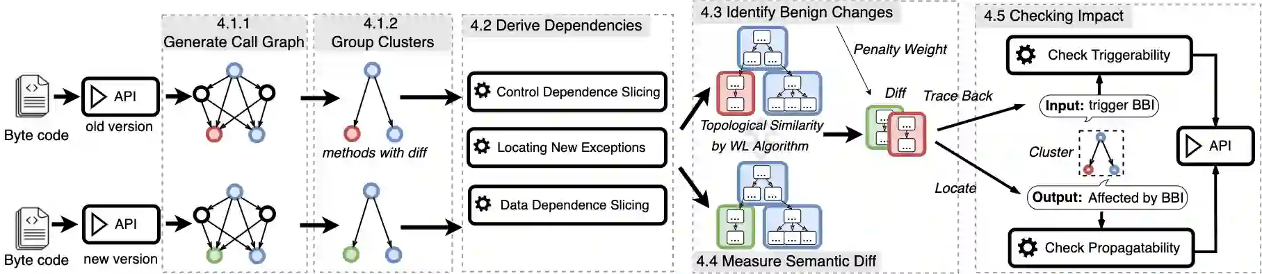 翻译:为加强爪哇第三方图书馆(TPLs)版本控制的兼容性, Maven 采用Sematic 版本(SemVer) 将版本的基本含义标准化,但用户即使在编译和链接成功的情况下,仍会遇到异常执行和升级后崩溃。它是由语义断裂(SemB)问题造成的,用户直接使用的API在升级过程中的签名和语义不一致。为了加强对SemVer规则的遵守,应该提醒开发者和用户注意这类问题。不幸的是,要静态地发现它们具有挑战性,因为API内部方法的语义改变很难捕捉到。动态测试可以肯定发现一些,但范围有限。为了检测SemVer规则的兼容性升级(SemB)问题,我们对180 SemB问题进行了实证研究,以便理解其根源,因此,我们建议SemVervier(Semici Referal Retail) 与Semocial Servoration(Semocial Reportervors)相比, 也可以在SemPI 上对开发者和用户进行静态研究。