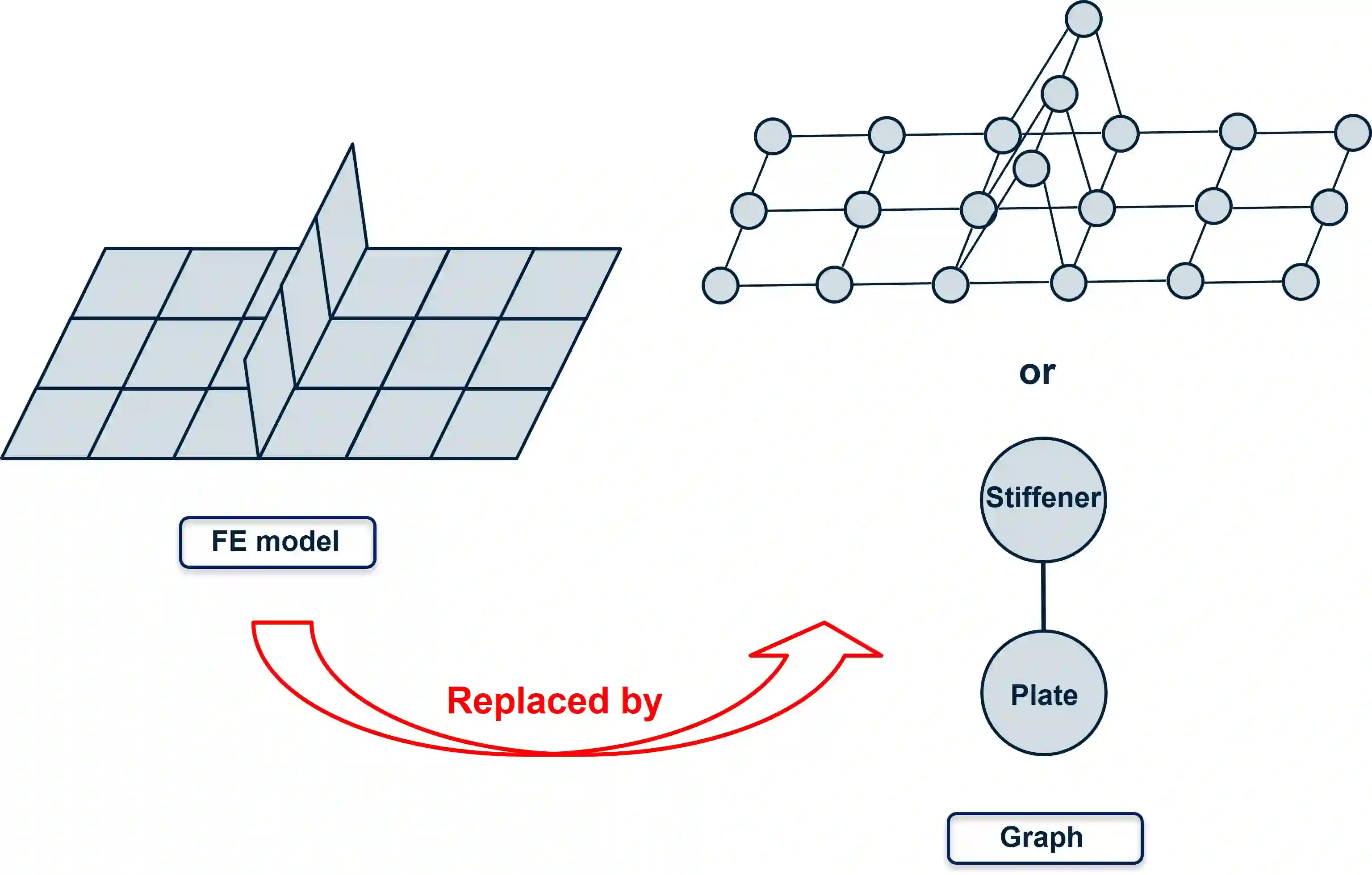 Machine learning (ML) and deep learning (DL) techniques have gained significant attention as reduced order models (ROMs) to computationally expensive structural analysis methods, such as finite element analysis (FEA). Graph neural network (GNN) is a particular type of neural network which processes data that can be represented as graphs. This allows for efficient representation of complex geometries that can change during conceptual design of a structure or a product. In this study, we propose a novel graph embedding technique for efficient representation of 3D stiffened panels by considering separate plate domains as vertices. This approach is considered using Graph Sampling and Aggregation (GraphSAGE) to predict stress distributions in stiffened panels with varying geometries. A comparison between a finite-element-vertex graph representation is conducted to demonstrate the effectiveness of the proposed approach. A comprehensive parametric study is performed to examine the effect of structural geometry on the prediction performance. Our results demonstrate the immense potential of graph neural networks with the proposed graph embedding method as robust reduced-order models for 3D structures.
