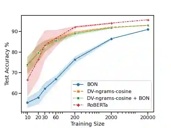 翻译:在IMDB电影审查数据集中,目前最先进的测试精确度(97.42 ⁇ )是由\ citet{thongtan-phimenthrakul-2019-smintiment} 报告的,并且是由在使用Cosine相似度(DV-ngrams-cosine)文档矢量(DV-ngramsine)的文档矢量(DV-ngramsine)上培训的后勤回归分析师在他们的论文中和由Naive Bayesian 重量缩放的Bag-Ngram(BON) 的矢量。虽然在经过培训的大型变压器模型中显示的是许多数据集和任务中SOTA的结果,但上述模型并没有被它们超过,尽管只是在IMDB数据集上经过简单化和预先训练。我们试图分析它在IMDBR-BA的测试模型中的出色性能时(ROBBBB的分数),我们还要分析模型的性能和RBAR的更佳的RBA-G-LA-LA-LAD的成绩。