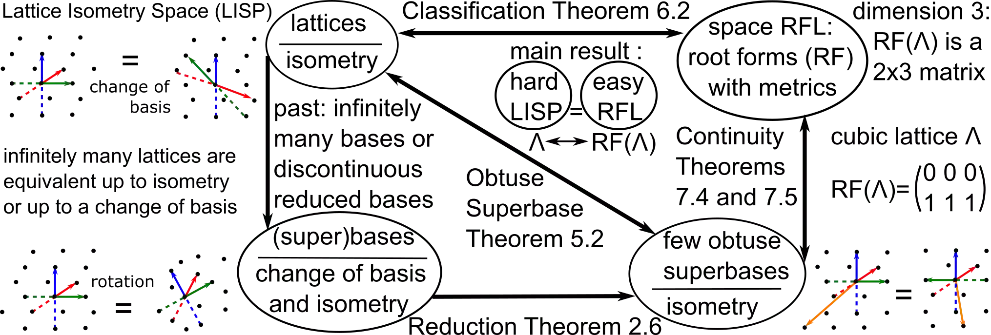 翻译:本文将最近获得的Lattice Isography Space(LISP)完整和连续的地图扩展至实际的维度 3 。 定期的三维阵列是一个无限的集合, 由Euclidean 3- space 中所有基础矢量的整数线性组合组成。 受以僵硬形式测定的晶体结构的驱动, 我们研究的是静态运动或等离子测量, 这是一种翻译、 旋转和反射的构成。 由此形成的空间LISP包含无限多等量级的拉特克。 在 3 维度 3 中, 我们用六个坐标对连续的空间 LISP进行参数化, 并在所有扰动状态下引入符合矩阵轴和连续性的新度指标 。 这种参数化有助于首次从剑桥结构数据库中视觉数十万个真正的晶体拉特。