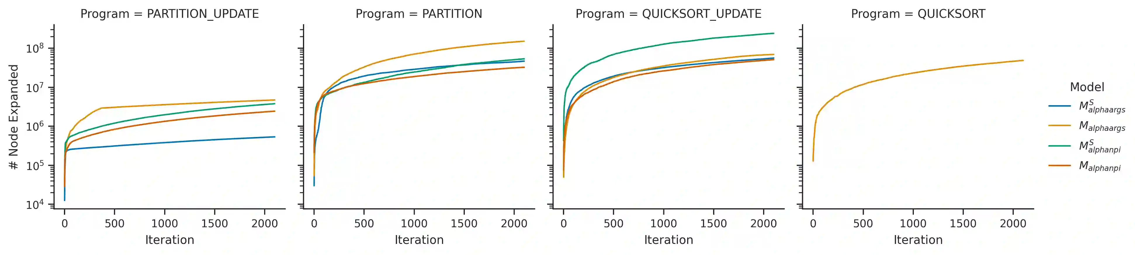翻译:设计智能系统最具有挑战性的目标之一是赋予它们从数据中合成程序的能力。 也就是说, 考虑到投入/ 产出对等形式的具体要求, 目标是训练一个机器学习模型来发现一个符合这些要求的程序。 最近一类方法利用组合搜索程序和深层学习合成程序。 然而, 它们通常只产生玩具程序, 使用没有提供任何高层次特征的域名语言, 比如功能参数参数, 从而降低其在现实世界环境中的可应用性。 我们扩展到艺术模型的状态, 阿尔法- 内普( AlphaNPI), 通过学习生成能够接受参数的功能。 这一改进将使我们能够更接近真正的计算机程序。 此外, 我们调查使用蒙特卡洛树搜索( A- MCTS) 的近似版本来加速融合。 我们通过学习Quicksort 算法来展示我们方法的潜力, 显示处理参数的能力对于学习和普及至关重要 。