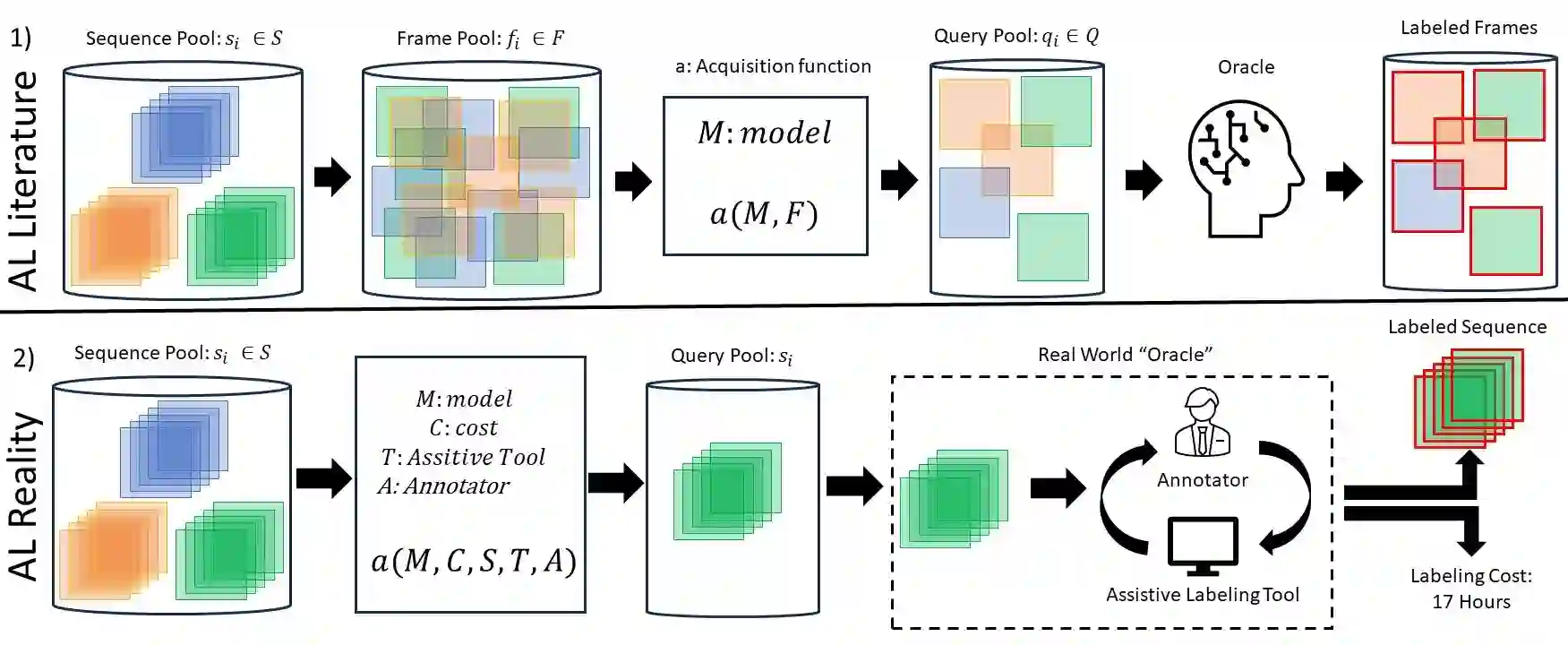 In this paper, we introduce the FOCAL (Ford-OLIVES Collaboration on Active Learning) dataset which enables the study of the impact of annotation-cost within a video active learning setting. Annotation-cost refers to the time it takes an annotator to label and quality-assure a given video sequence. A practical motivation for active learning research is to minimize annotation-cost by selectively labeling informative samples that will maximize performance within a given budget constraint. However, previous work in video active learning lacks real-time annotation labels for accurately assessing cost minimization and instead operates under the assumption that annotation-cost scales linearly with the amount of data to annotate. This assumption does not take into account a variety of real-world confounding factors that contribute to a nonlinear cost such as the effect of an assistive labeling tool and the variety of interactions within a scene such as occluded objects, weather, and motion of objects. FOCAL addresses this discrepancy by providing real annotation-cost labels for 126 video sequences across 69 unique city scenes with a variety of weather, lighting, and seasonal conditions. We also introduce a set of conformal active learning algorithms that take advantage of the sequential structure of video data in order to achieve a better trade-off between annotation-cost and performance while also reducing floating point operations (FLOPS) overhead by at least 77.67%. We show how these approaches better reflect how annotations on videos are done in practice through a sequence selection framework. We further demonstrate the advantage of these approaches by introducing two performance-cost metrics and show that the best conformal active learning method is cheaper than the best traditional active learning method by 113 hours.