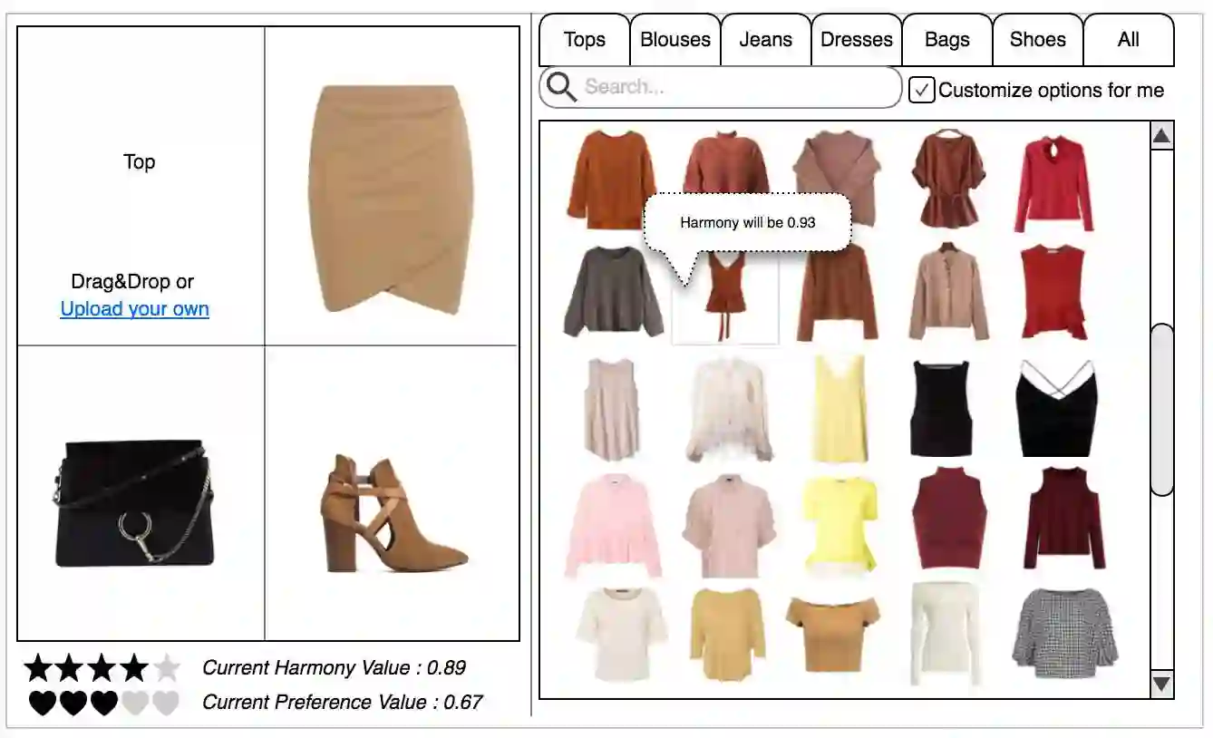 Color is the most important intrinsic sensory feature that has a powerful impact on product sales. Color is even responsible for raising the aesthetic senses in our brains. Account for individual differences is crucial in color aesthetics. It requires user-driven mechanisms for various e-commerce applications. We propose a method for quantitative evaluation of all types of perceptual responses to color(s): distinct color preference, color harmony, and color combination preference. Preference for color schemes can be predicted by combining preferences for the basic colors and ratings of color harmony. Harmonious pallets are extracted from big data set using comparison algorithms based on fuzzy similarity and grouping. The proposed model results in useful predictions of harmony and preference of multicolored images. For example, in the context of apparel coordination, it allows predicting a preference for a look based on clothing colors. Our approach differs from standard aesthetic models, since in accounts for a personal variation. In addition, it can process not only lower-order color pairs, but also groups of several colors.