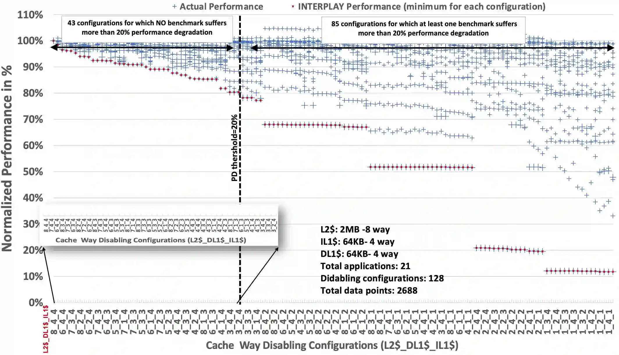 Modern and future processors need to remain functionally correct in the presence of permanent faults to sustain scaling benefits and limit field returns. This paper presents a combined analytical and microarchitectural simulation-based framework called INTERPLAY, that can rapidly predict, at design-time, the performance degradation expected from a processor employing way-disabling to handle permanent faults in caches while in-the-field. The proposed model can predict a program's performance with an accuracy of up to 98.40% for a processor with a two-level cache hierarchy, when multiple caches suffer from faults and need to disable one or more of their ways. INTERPLAY is 9.2x faster than an exhaustive simulation approach since it only needs the training simulation runs for the single-cache way-disabling configurations to predict the performance for any multi-cache way-disabling configuration.