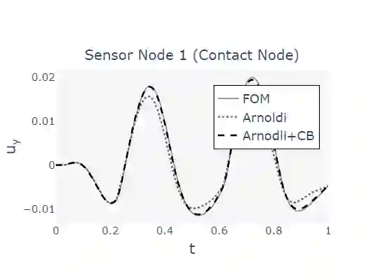翻译:本文为动态接触问题提出了一种新的减少方法。最近,我们为节点到节点的配方提出了一个有效的削减计划,这导致了线性互补问题。在这里,我们将潜在的接触问题提升为节点到分的配方。由于采用了双重方法,获得了非线性互补问题,节点到分的状态被四面形不平等描述,每个步骤的顺序都接近于一次长点。这些步骤是在一个缩小的近似空间中实施的,而接触处理本身可以通过克雷格-班普敦方法实现,该方法保留了接触区域的拉格朗乘数和节点置换。我们认为,如果接触区域小于整个结构,则削减计划效果非常有效,因为接触形状完全恢复了。因此产生的削减方法的绩效根据两个2D的计算实例进行评估。