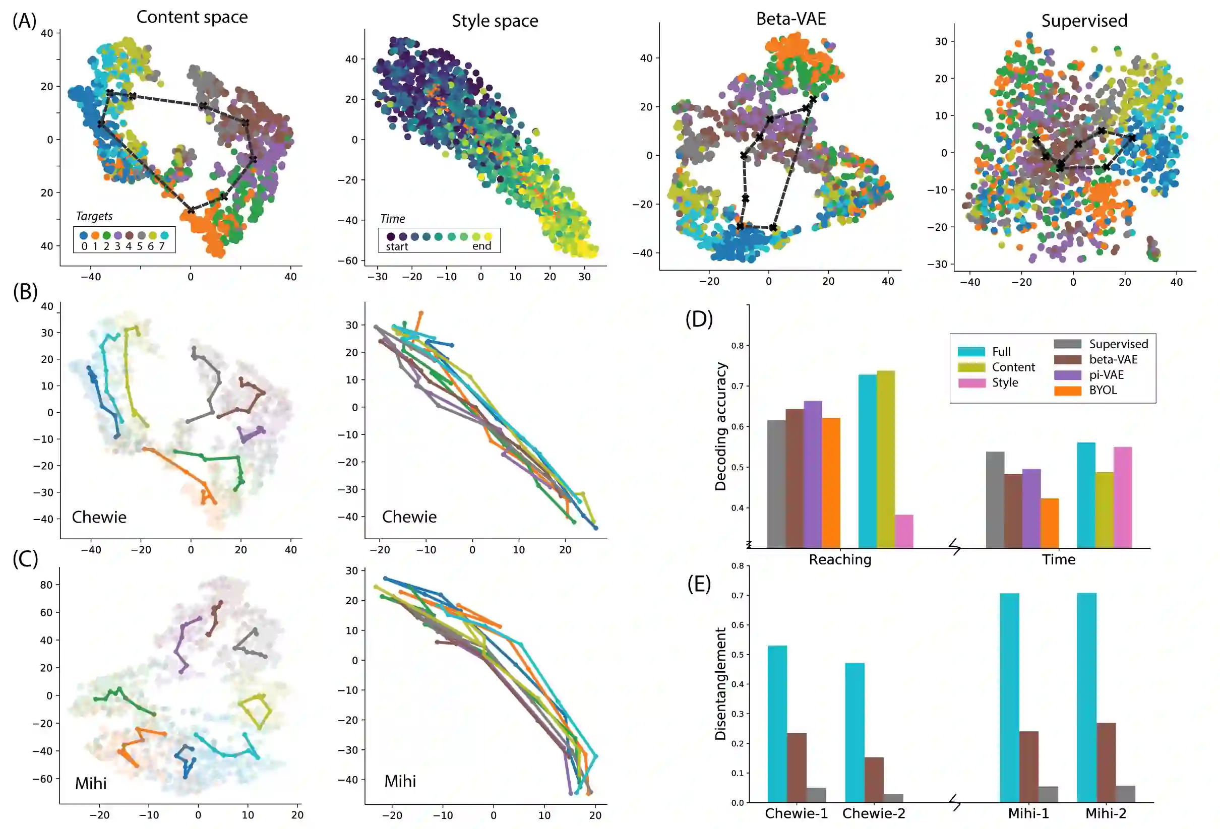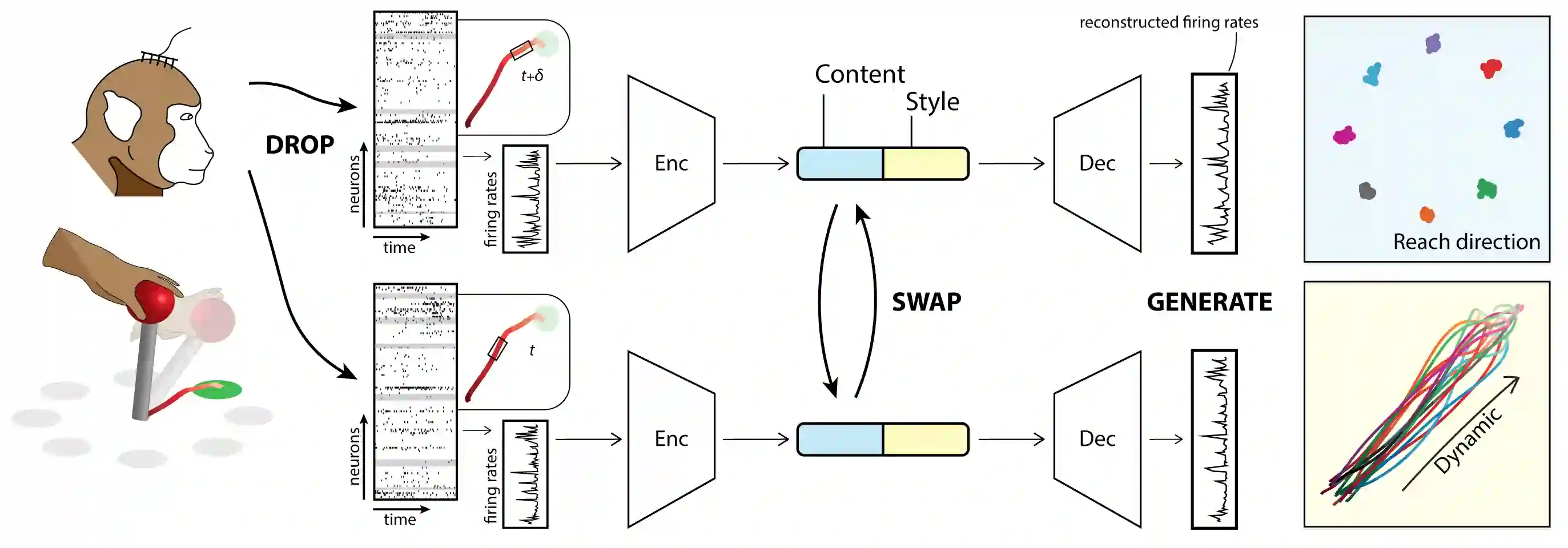 翻译:神经活动的有意义和简化的表达方式可以产生对神经电路中处理信息的方式和内容的洞察力。 但是,如果没有标签, 发现显示大脑与行为之间关联的表达方式可能具有挑战性。 在这里, 我们引入了一种新的不受监督的方法来学习神经活动分解的表达方式, 叫做 Swap- VAE 。 我们的方法将基因模型框架和具体实例的匹配损失结合起来, 试图最大限度地扩大输入( 脑状态) 转变观点之间的表达相似性。 这些转变( 或扩大) 观点是通过及时丢弃神经元和喷洒样本来创建的, 而这些转变( 或增强的) 观点会直接导致网络形成一个既保持时间一致性又保持对用来代表神经状态的特定神经元的不一致性的表达方式。 通过对合成数据以及来自不同大脑中数百个神经元的神经记录的神经记录进行评估, 我们表明, 有可能在与行为相关的潜在维度上建立分离神经数据的表达方式。