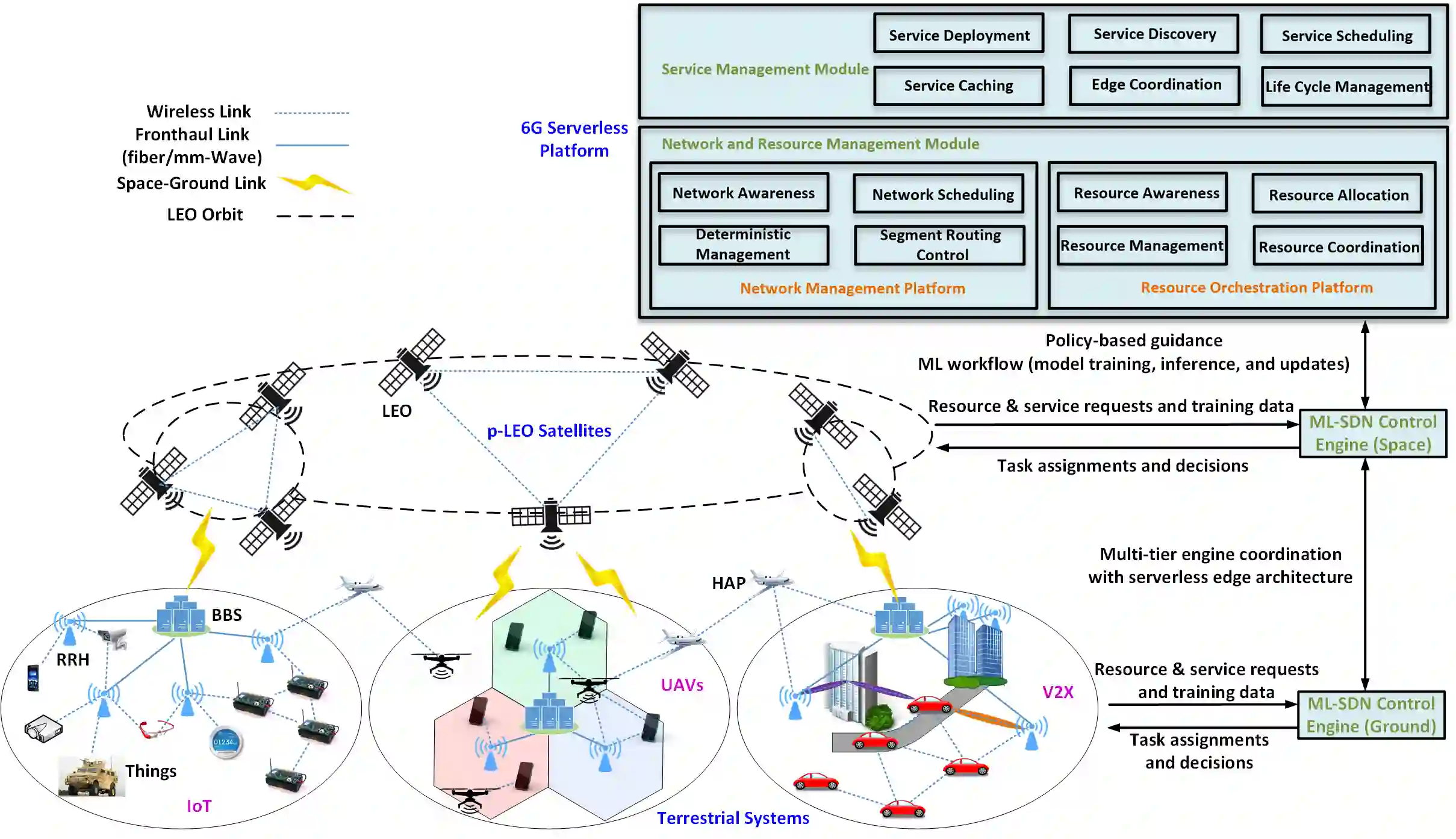 翻译:低地球轨道(LEO)巨型星座,将政府空间系统和商业做法结合起来,已成为第六代(6G)网络的赋能技术,因为其良好的优点是覆盖全球,为军事和民用案件提供无处不在的服务,然而,聚集的低地轨道卫星网络基础设施仍然缺乏利用空间和地面系统的协同作用,因此,本文件扩展了传统的无服务器云平台,为6G 扩散的低地轨道(p-LEO)卫星生态系统提供了无服务器边缘学习结构,并从联网角度提供了新的分布式培训设计。拟议设计动态协调通信和计算各不同实体单位的功能和资源,以高效完成服务级协议的多剂深度强化学习。创新的生态系统增强,包括超宽带接入、防堵传输、弹性联网和相关公开挑战,也用于端对端连接、通信和学习表现的调查。