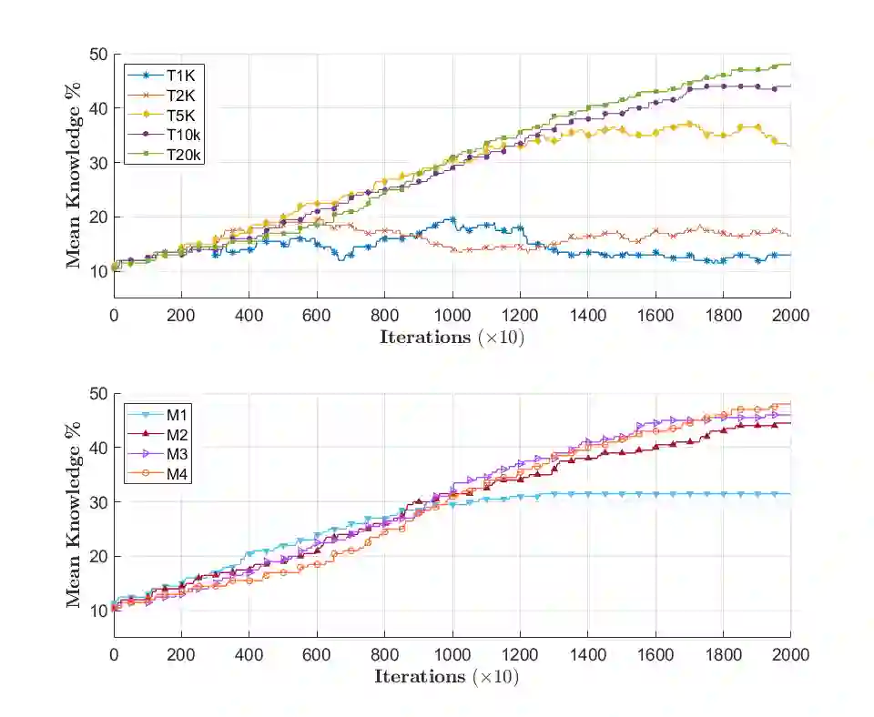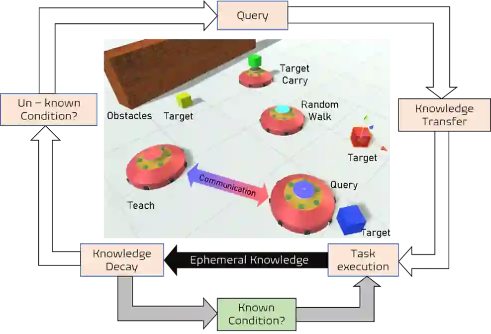 翻译:在人工群温系统中实现知识共享,可能导致自主多试剂和机器人系统研究和实现集体智能方面的自主多试剂和机器人系统研究的重大发展。然而,这很难实现,因为除了基于查询的响应方法之外,没有通用的框架来在代理人之间转让技能。此外,自然生活系统对于所学的一切都有“忘却”特性。分析人工系统中的这种短暂性质(新知识的时记性)在文献中从未研究过。我们提议了一个基于行为树的框架,以实现一个查询-回应机制,用于转让被编码为该部分知识在代理人之间进行条件-行动控制分流以弥补这一差距的技能。我们模拟了一个具有不同初始知识的多试剂小组,用于执行飞行任务。在进行基本操作时,每个机器人都要求其他机器人对未知的条件作出反应。对此作出回应的机器人分享,分享行为树中的一部分知识是用来解决问题的。我们研究了通过这样一个框架获得的新知识的短暂性质,在这个框架中,代理人获得的知识要么因记忆而受到限制,要么因时间而被遗忘。我们的调查显示一个具有最起码的知识周期,我们发现这些知识的积累到最起码的知识。