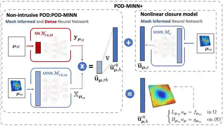 Many applications in computational physics involve approximating problems with microstructure, characterized by multiple spatial scales in their data. However, these numerical solutions are often computationally expensive due to the need to capture fine details at small scales. As a result, simulating such phenomena becomes unaffordable for many-query applications, such as parametrized systems with multiple scale-dependent features. Traditional projection-based reduced order models (ROMs) fail to resolve these issues, even for second-order elliptic PDEs commonly found in engineering applications. To address this, we propose an alternative nonintrusive strategy to build a ROM, that combines classical proper orthogonal decomposition (POD) with a suitable neural network (NN) model to account for the small scales. Specifically, we employ sparse mesh-informed neural networks (MINNs), which handle both spatial dependencies in the solutions and model parameters simultaneously. We evaluate the performance of this strategy on benchmark problems and then apply it to approximate a real-life problem involving the impact of microcirculation in transport phenomena through the tissue microenvironment.