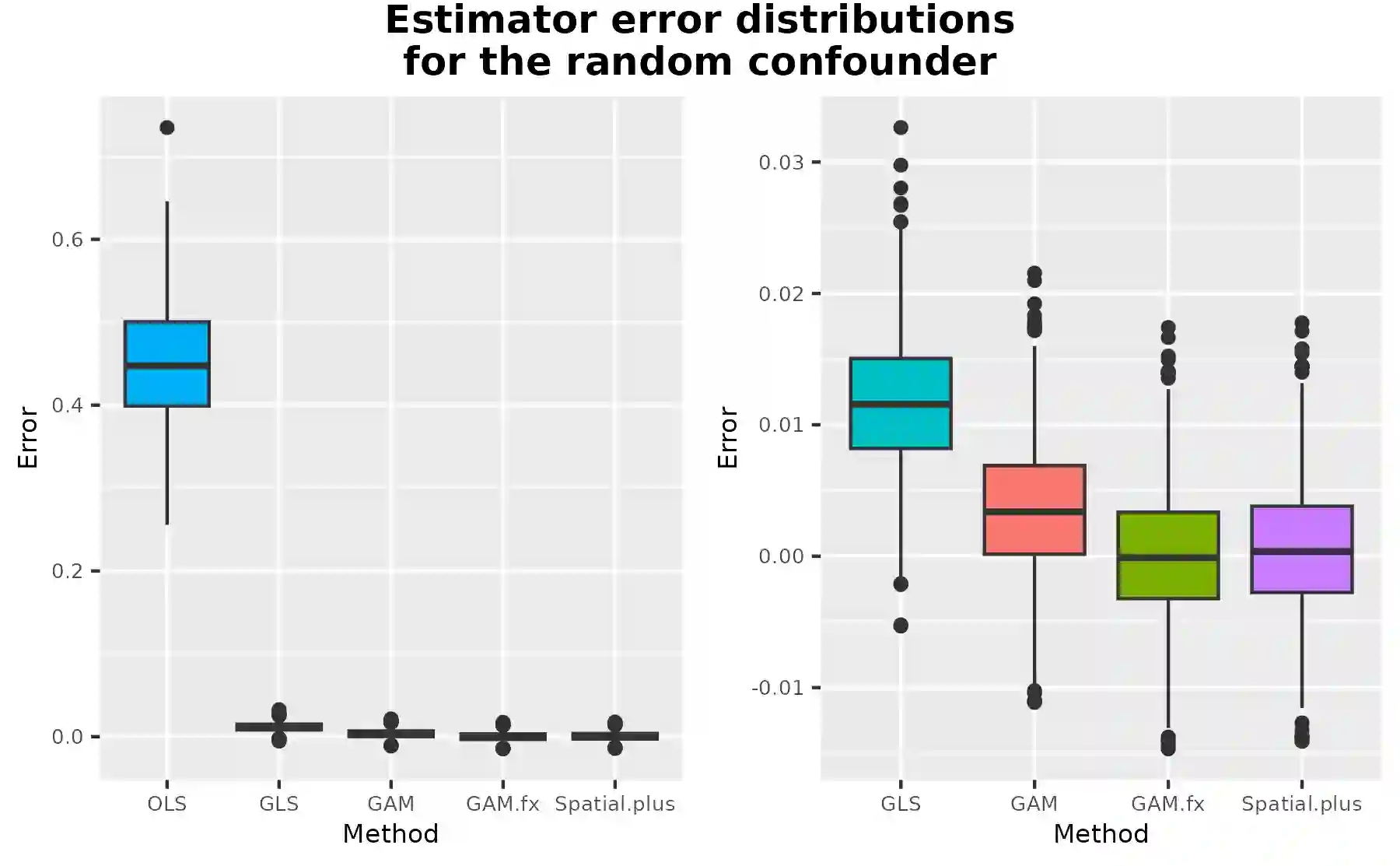 This paper addresses the asymptotic performance of popular spatial regression estimators on the task of estimating the effect of an exposure on an outcome in the presence of an unmeasured spatially-structured confounder. This setting is often referred to as "spatial confounding." We consider spline models, Gaussian processes (GP), generalized least squares (GLS), and restricted spatial regression (RSR) under two data generation processes: one where the confounder is a fixed effect and one where it is a random effect. The literature on spatial confounding is confusing and contradictory, and our results correct and clarify several misunderstandings. We first show that, like an unadjusted OLS estimator, RSR is asymptotically biased under any spatial confounding scenario. We then prove a novel result on the consistency of the GLS estimator under spatial confounding. We finally prove that estimators like GLS, GP, and splines, that are consistent under confounding by a fixed effect will also be consistent under confounding by a random effect. We conclude that, contrary to much of the recent literature on spatial confounding, traditional estimators based on partially linear models are amenable to estimating effects in the presence of spatial confounding. We support our theoretical arguments with simulation studies.