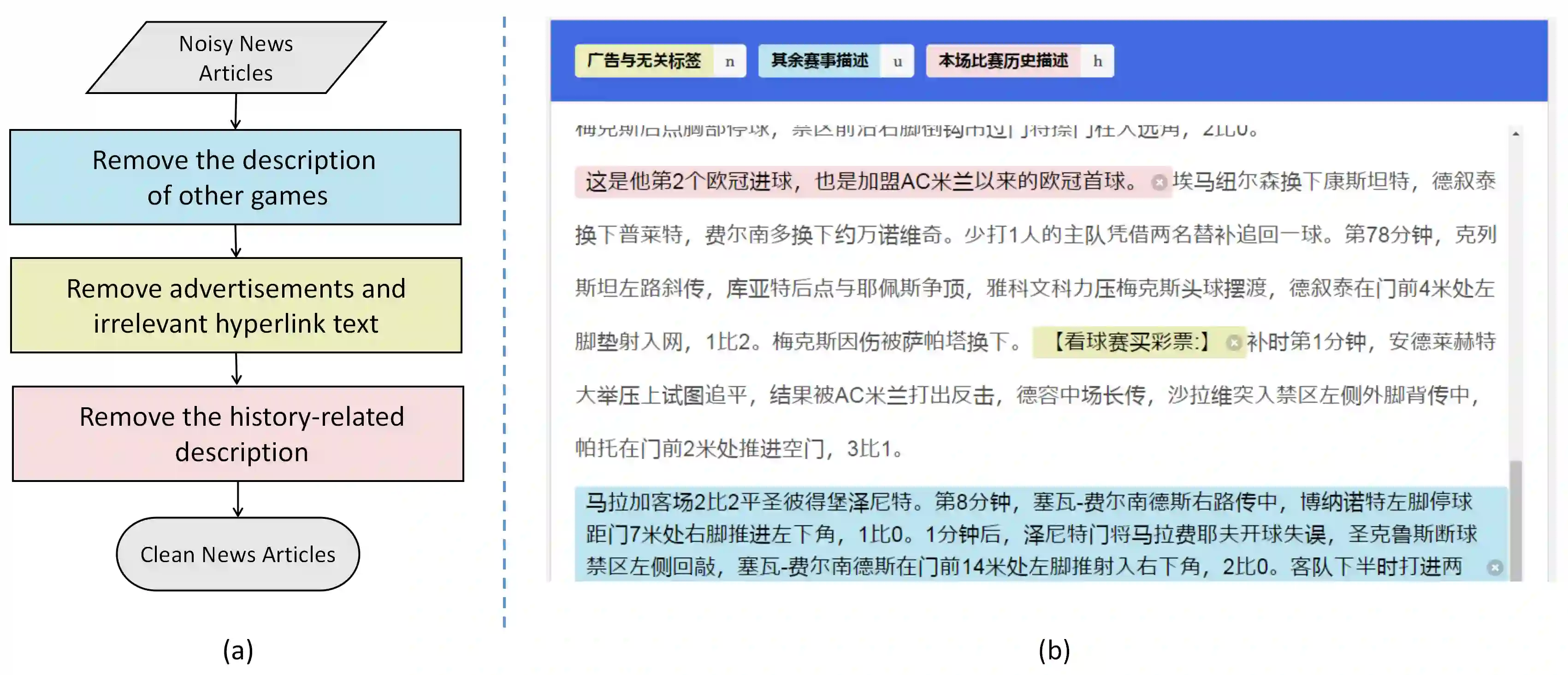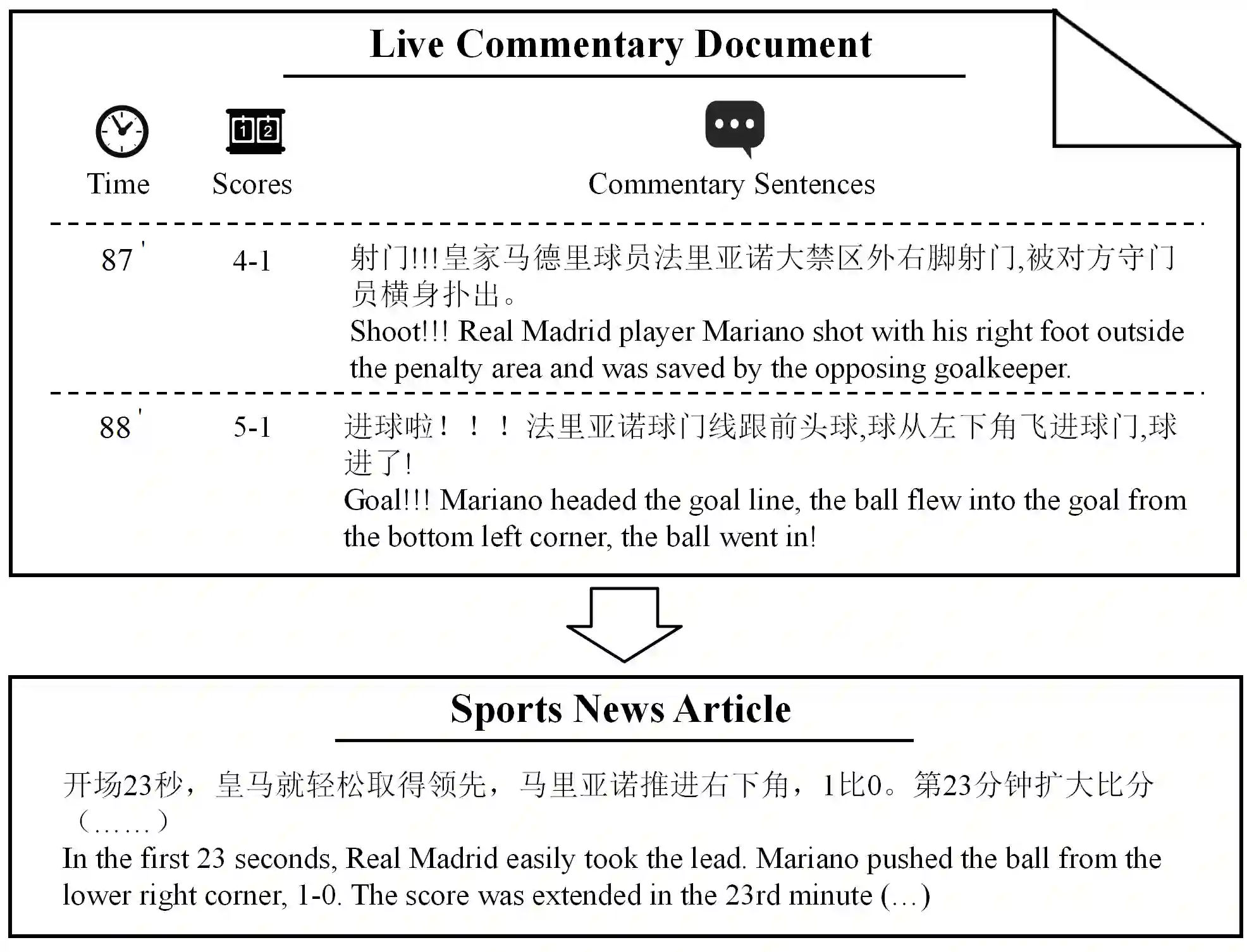 翻译:体育游戏总和旨在从现场评论中产生体育新闻。然而,现有的数据集都是通过自动收集和清理程序构建的,造成大量噪音。此外,目前的工作忽略了现场评论和体育新闻之间的知识差距,从而限制了体育游戏总和的性能。在本文中,我们引入了K-SportsSum,这是一个具有两个特点的新数据集:(1)K-SportsSum从大型游戏中收集了大量数据。它有7,854对评论-新闻。为了提高质量,K-SportsSum采用人工清理程序;(2)与现有的数据集不同,为了缩小知识差距,K-SportsSum进一步提供了包含523个体育队和14,724个体育运动员信息的大规模知识库。此外,我们还引入了一个利用现场评论和知识生成体育新闻的知识强化摘要。K-Sportsum和SportSum数据集的广泛实验显示,我们的模型实现了新的状态和艺术模型;(2)与现有数据集不同,以缩小知识差距,K-SportsSum进一步提供了包含523个体育队和14,724个体育运动员的信息。此外,我们还引入了知识强化的分析和人类研究。