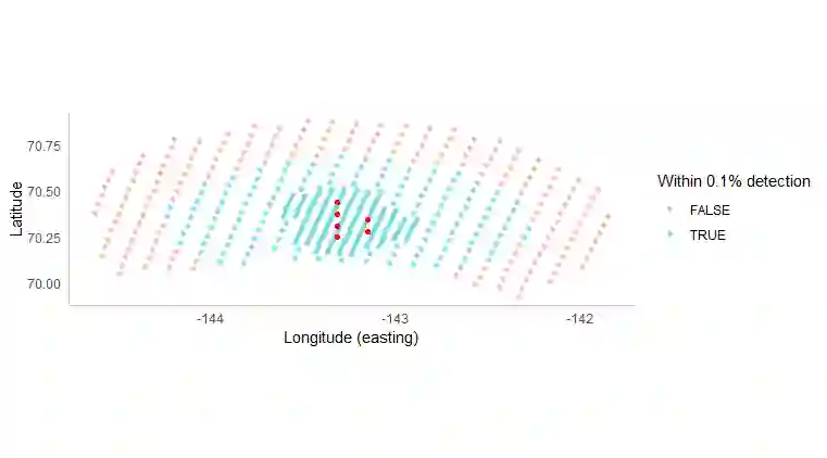 翻译:被动声学监测是勘测野生生物群落的一个很有希望的方法,在声学上比视觉上更容易检测到。当动物声学可以在某些传感器的阵列上找到独特的动物声学时,就存在通过声音空间捕捉-捕捉(ASCR)来估计人口密度的潜力。检测需要正确辨别,并贯穿于传感器,以便建立捕捉历史。然而,健全的分类是不完善的,在某些情况下,仅仅从单一传感器(“星盘”)上检测到的高比例的声音并不是来自目标物种,也就是说,是虚假的阳性。我们在2010年对博福特海收集的弓头鲸呼叫(Baleana mysticeteutus)进行案例研究时,我们提出对浮头鲸呼叫(Beaufort Sea)的量学研究,我们提议对ASRCR进行新的扩展,通过对至少由两个传感器检测到的呼声量进行调节,从而能够正确识别。我们通过模拟来进行个体层面的检测,我们模拟了一个无色调空间密度,我们包括了不同的测量错误。我们通过案例研究通过模拟显示,近乎无偏差偏差度的密度的直判断度,从而得出了直系的直判的直判。