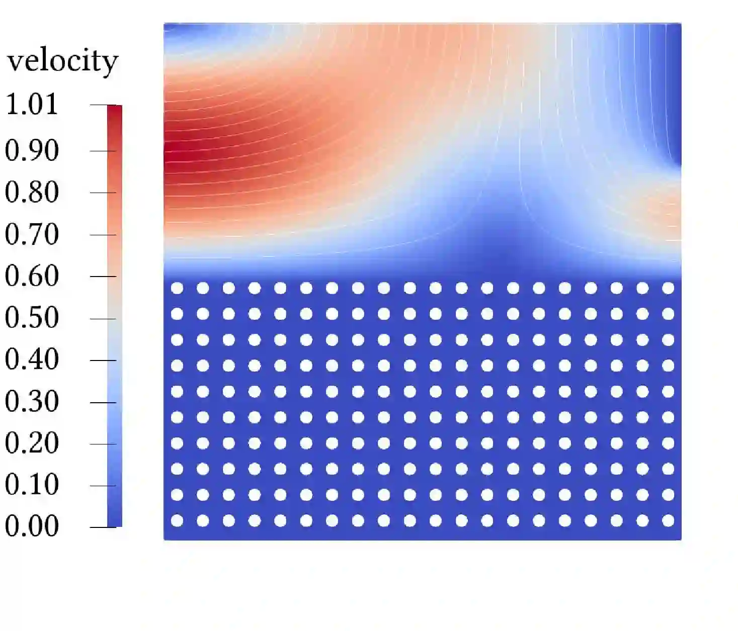 翻译:由于在不同环境场景及工业与医学应用中的广泛出现,采用各类界面条件的Stokes-Darcy问题已成为数学建模与计算科学领域活跃的研究方向。针对实际应用中此类耦合问题的数值模拟,需要开发鲁棒且高效的计算算法。本文基于均质化理论与边界层理论,对近期发展的Beavers-Joseph界面条件进行推广。该扩展不仅适用于平行于流体-多孔介质界面的流动(如其前身条件),还能处理任意方向的流动。为高效求解具有此类广义界面条件的Stokes-Darcy问题,我们通过傅里叶分析开发并分析了一种Robin-Robin区域分解方法,以确定Robin界面条件中的最优权重系数。我们研究了所提方法的效率与鲁棒性,并通过数值模拟验证了所得理论结果。