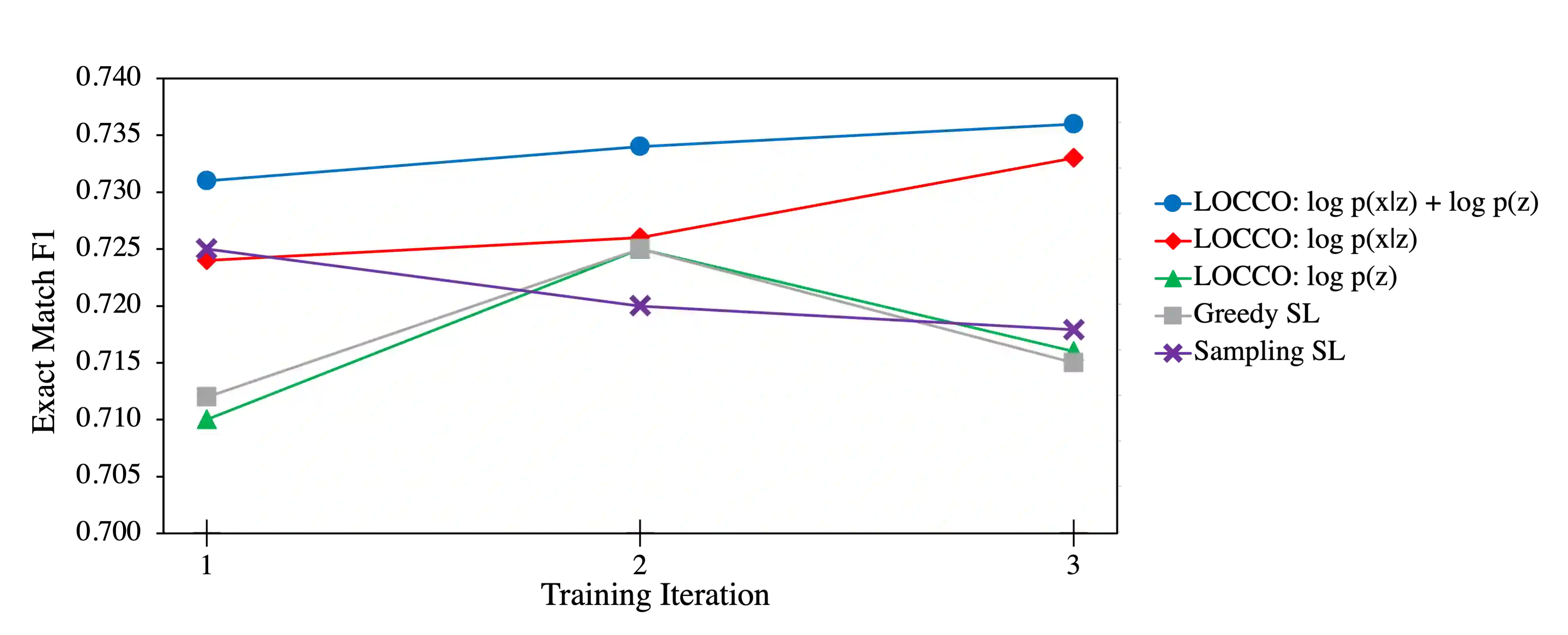 We introduce Logical Offline Cycle Consistency Optimization (LOCCO), a scalable, semi-supervised method for training a neural semantic parser. Conceptually, LOCCO can be viewed as a form of self-learning where the semantic parser being trained is used to generate annotations for unlabeled text that are then used as new supervision. To increase the quality of annotations, our method utilizes a count-based prior over valid formal meaning representations and a cycle-consistency score produced by a neural text generation model as additional signals. Both the prior and semantic parser are updated in an alternate fashion from full passes over the training data, which can be seen as approximating the marginalization of latent structures through stochastic variational inference. The use of a count-based prior, frozen text generation model, and offline annotation process yields an approach with negligible complexity and latency increases as compared to conventional self-learning. As an added bonus, the annotations produced by LOCCO can be trivially repurposed to train a neural text generation model. We demonstrate the utility of LOCCO on the well-known WebNLG benchmark where we obtain an improvement of 2 points against a self-learning parser under equivalent conditions, an improvement of 1.3 points against the previous state-of-the-art parser, and competitive text generation performance in terms of BLEU score.