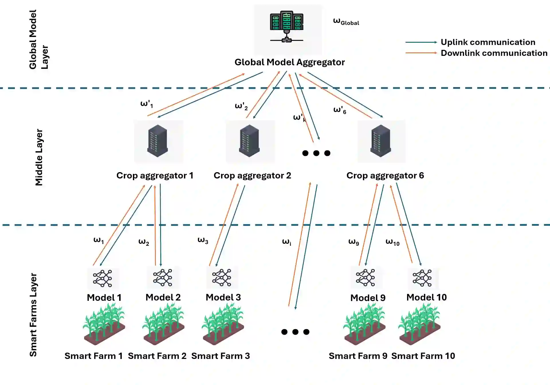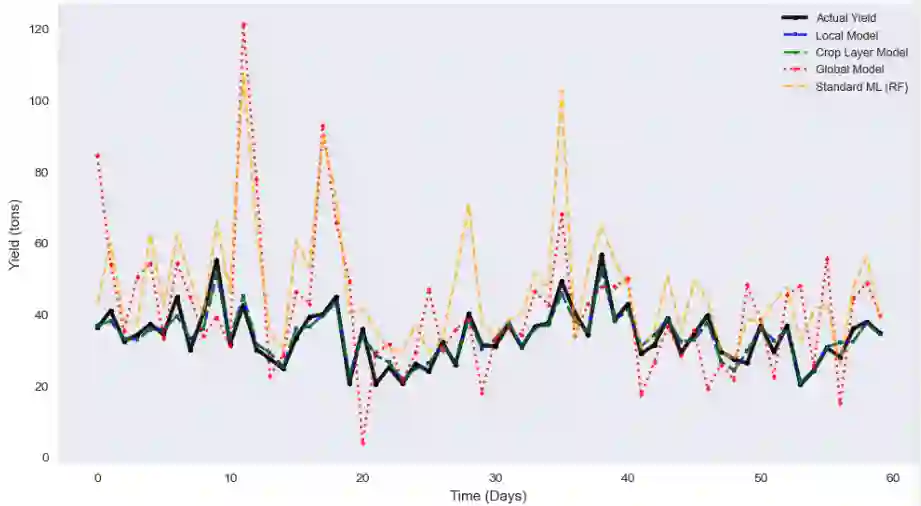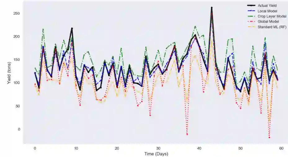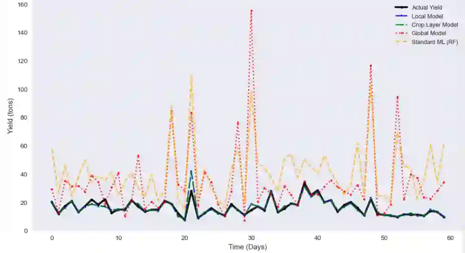 翻译:本文提出了一种专为智能农业生产系统和作物产量预测设计的新型分层联邦学习架构。我们的方法引入了季节性订阅机制,农场在每个农业季节开始时加入特定作物的集群。所提出的三层架构包括客户层的个体智能农场、中间层的作物特定聚合器以及顶层的全局模型聚合器。在每个作物集群内,客户端协作训练针对特定作物类型的专用模型,这些模型随后被聚合以生成更高层级的全局模型,从而整合跨多种作物的知识。这种分层设计既实现了针对个体作物类型的本地专业化,又能在不同农业环境中实现全局泛化,同时保护数据隐私并减少通信开销。实验证明了所提出系统的有效性,表明本地和作物层模型能够紧密跟踪实际产量模式并保持高度一致性,显著优于标准机器学习模型。结果验证了分层联邦学习在农业环境中的优势,特别是在涉及异构耕作环境和隐私敏感农业数据的场景中。