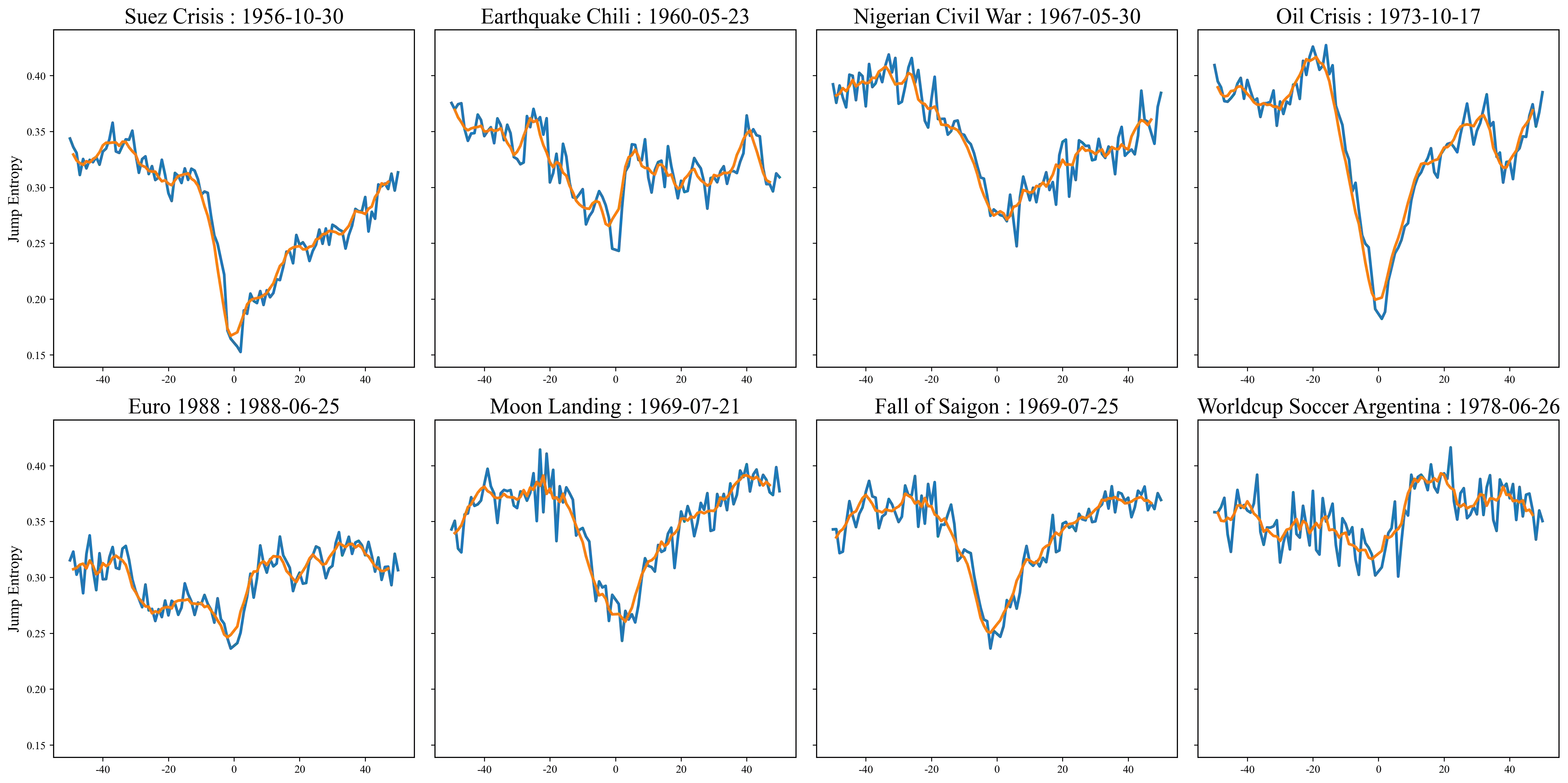 This article relies on information-theoretic measures to examine how events impacted the news for the period 1950-1995. Moreover, we present a method for event characterization in (unstructured) textual sources, offering a taxonomy of events based on the different ways they impacted the flow of news information. The results give us a better understanding of the relationship between events and their impact on news sources with varying ideological backgrounds.