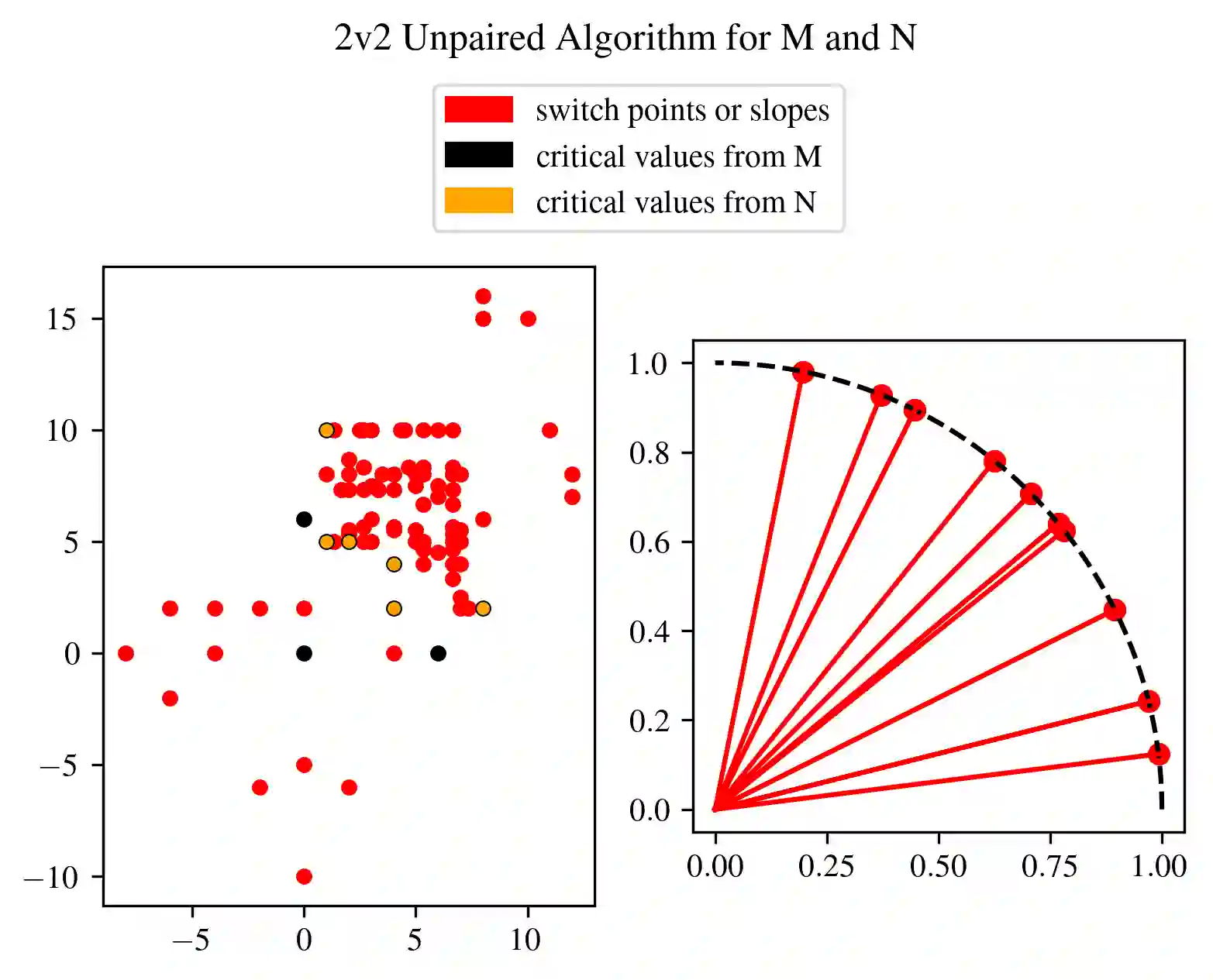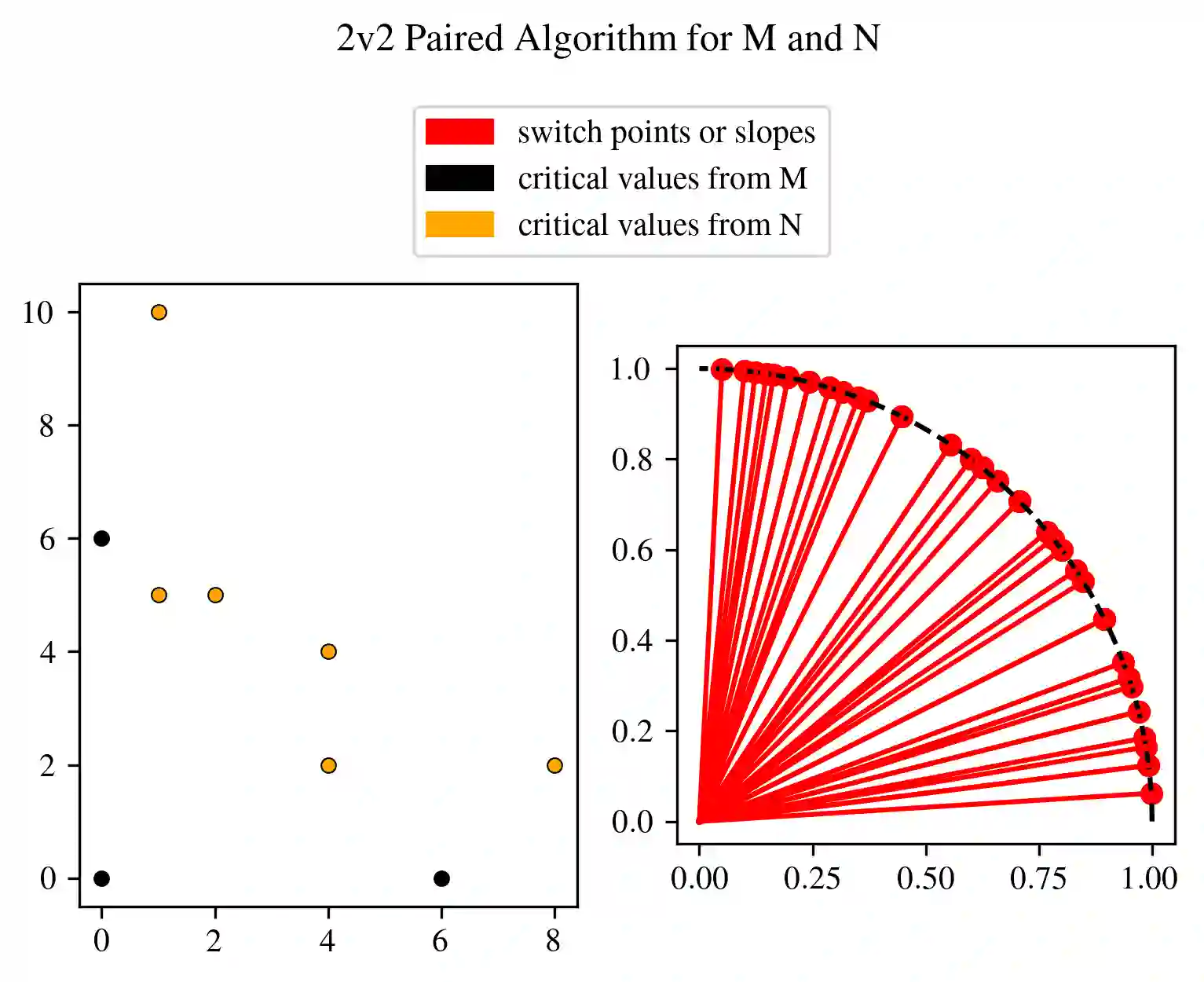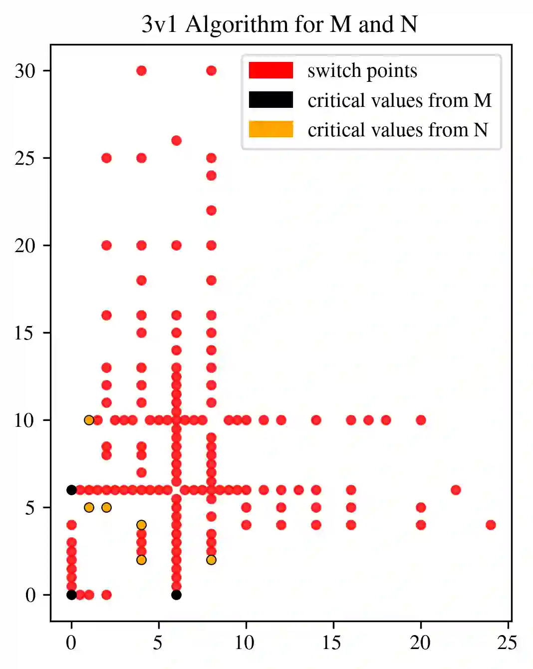In multi-parameter persistence, the matching distance is defined as the supremum of weighted bottleneck distances on the barcodes given by the restriction of persistence modules to lines with a positive slope. In the case of finitely presented bi-persistence modules, all the available methods to compute the matching distance are based on restricting the computation to lines through pairs from a finite set of points in the plane. Some of these points are determined by the filtration data as they are entrance values of critical simplices. However, these critical values alone are not sufficient for the matching distance computation and it is necessary to add so-called switch points, i.e. points such that on a line through any of them, the bottleneck matching switches the matched pair. This paper is devoted to the algorithmic computation of the set of switch points given a set of critical values. We find conditions under which a candidate switch point is erroneous or superfluous. The obtained conditions are turned into algorithms that have been implemented. With this, we analyze how the size of the set of switch points increases as the number of critical values increases, and how it varies depending on the distribution of critical values. Experiments are carried out on various types of bi-persistence modules.