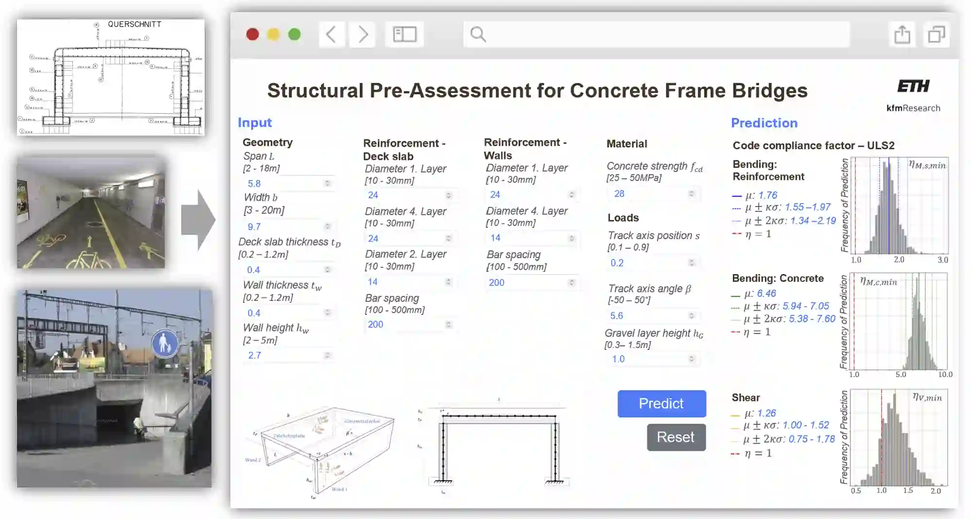 翻译:老化基础设施组合提出了一个关键资源分配难题:如何确定哪些结构需要干预,哪些可安全维持运营。结构评估必须在成本较低但保守的分析方法与精确但昂贵且难以在组合层面规模化应用的仿真之间取得平衡。本文提出采用贝叶斯神经网络代理模型对全球常见桥梁类型(如钢筋混凝土框架桥)进行快速结构预评估。该模型基于瑞士联邦铁路桥梁组合开发的参数化流程生成的大规模非线性有限元分析数据库进行训练,能够通过预测规范符合系数并校准认知不确定性,从而准确高效地估计高保真结构分析结果。我们的贝叶斯神经网络代理模型支持快速且考虑不确定性的分级评估:标记潜在关键结构,并为需要精细化分析的场景提供指导。通过铁路下穿通道的实际案例研究,我们验证了该框架的有效性,表明其能够通过避免在整个基础设施组合中进行不必要的分析和物理干预,显著降低成本和碳排放。