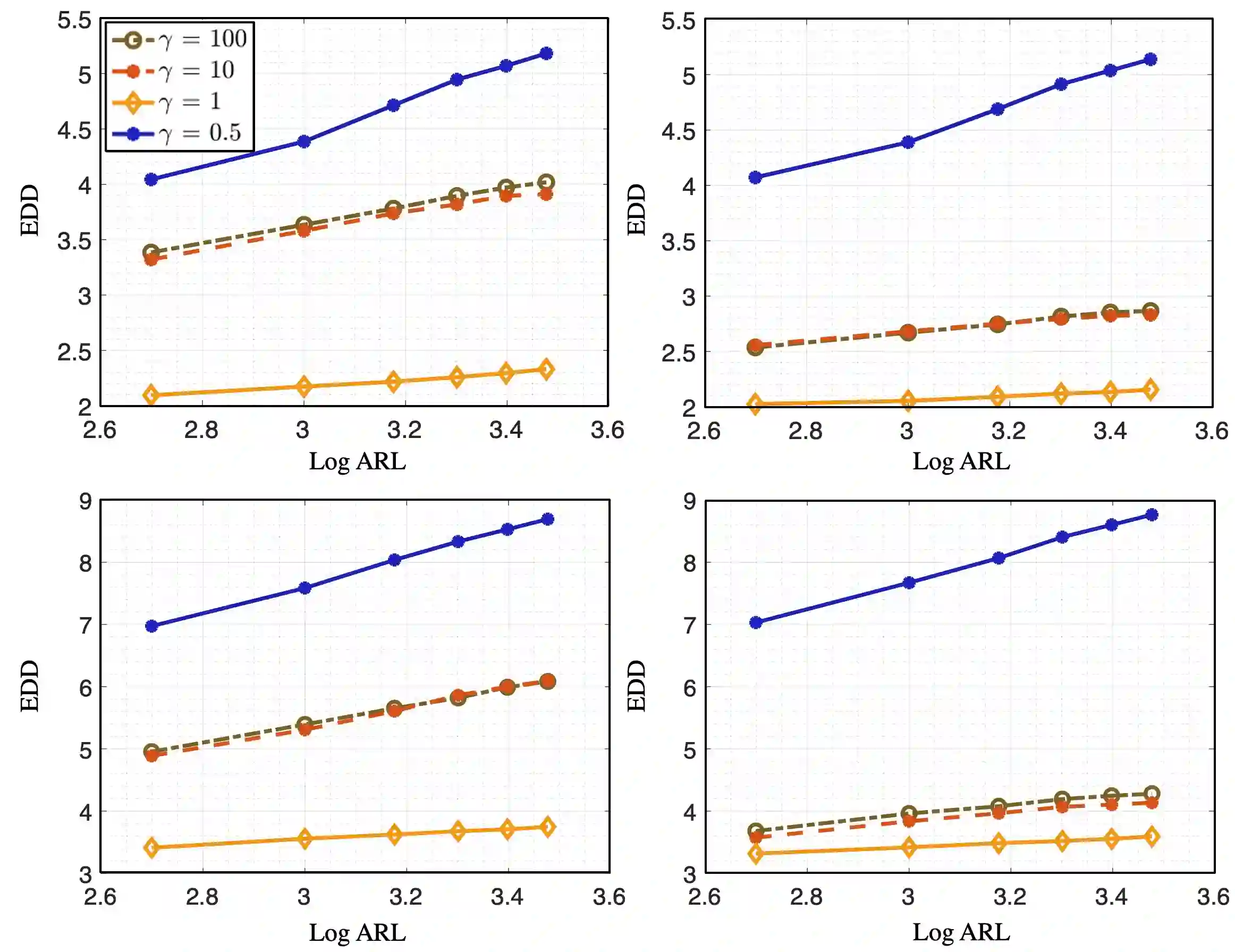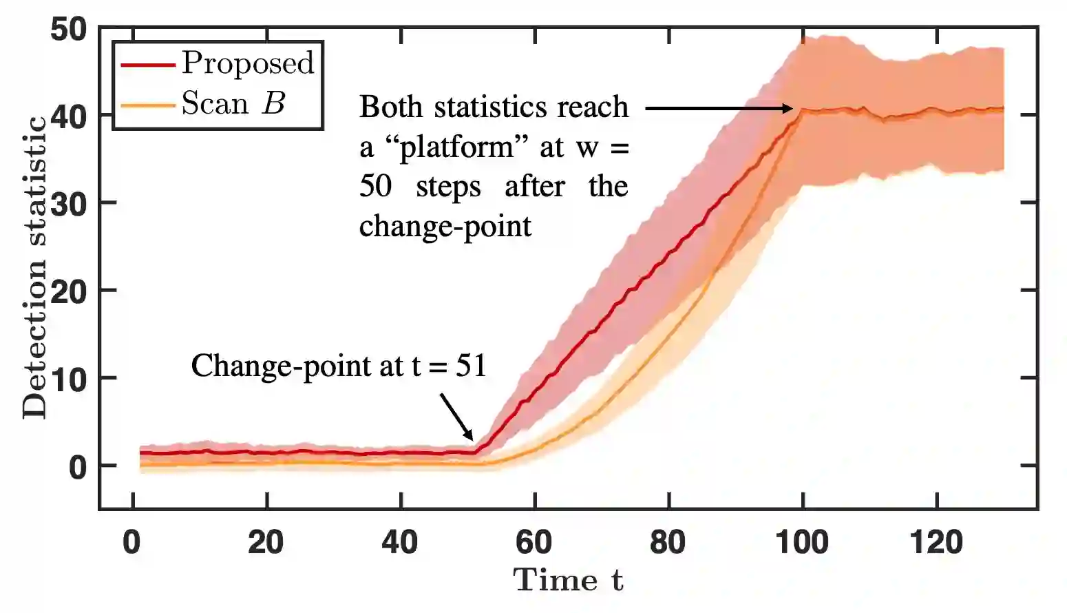 翻译:本文提出了一种计算高效的在线核累积和(CUSUM)方法,用于变点检测。该方法通过在一组核统计量上取最大值来应对未知变点位置的问题。与现有的基于核的变点检测方法(包括对应于非参数Shewhart控制图类程序的Scan-B统计量)相比,我们的方法对小变化表现出更高的敏感性。我们为两个关键性能指标——平均运行长度(ARL)和预期检测延迟(EDD)——提供了精确的解析近似,这使我们能够确定最优窗口长度约为ARL的对数,以确保相对于具有无限记忆的预言机程序,功效损失最小。此外,我们引入了检测统计量的递归计算程序,以确保恒定的计算和内存复杂度,这对于在线实现至关重要。通过对模拟数据和真实数据的广泛实验,我们证明了该方法的竞争性能,并验证了我们的理论结果。