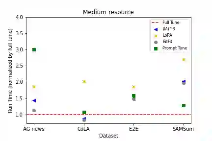 As foundation models continue to exponentially scale in size, efficient methods of adaptation become increasingly critical. Parameter-efficient fine-tuning (PEFT), a recent class of techniques that require only modifying a small percentage of the model parameters, is currently the most popular method for adapting large language models (LLMs). Several PEFT techniques have recently been proposed with varying tradeoffs. We provide a comprehensive and uniform benchmark of various PEFT techniques across a representative LLM, the FLAN-T5 model, and evaluate model performance across different data scales of classification and generation datasets. Based on this, we provide a framework for choosing the optimal fine-tuning techniques given the task type and data availability. Contrary to popular belief, we also empirically prove that PEFT techniques converge slower than full tuning in low data scenarios, and posit the amount of data required for PEFT methods to both perform well and converge efficiently. Lastly, we further optimize these PEFT techniques by selectively choosing which parts of the model to train, and find that these techniques can be applied with significantly fewer parameters while maintaining and even improving performance.