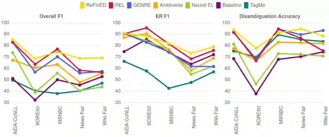 Existing evaluations of entity linking systems often say little about how the system is going to perform for a particular application. There are two fundamental reasons for this. One is that many evaluations only use aggregate measures (like precision, recall, and F1 score), without a detailed error analysis or a closer look at the results. The other is that all of the widely used benchmarks have strong biases and artifacts, in particular: a strong focus on named entities, an unclear or missing specification of what else counts as an entity mention, poor handling of ambiguities, and an over- or underrepresentation of certain kinds of entities. We provide a more meaningful and fair in-depth evaluation of a variety of existing end-to-end entity linkers. We characterize their strengths and weaknesses and also report on reproducibility aspects. The detailed results of our evaluation can be inspected under https://elevant.cs.uni-freiburg.de/emnlp2023 . Our evaluation is based on several widely used benchmarks, which exhibit the problems mentioned above to various degrees, as well as on two new benchmarks, which address the problems mentioned above. The new benchmarks can be found under https://github.com/ad-freiburg/fair-entity-linking-benchmarks .