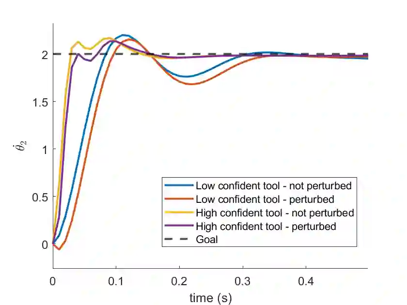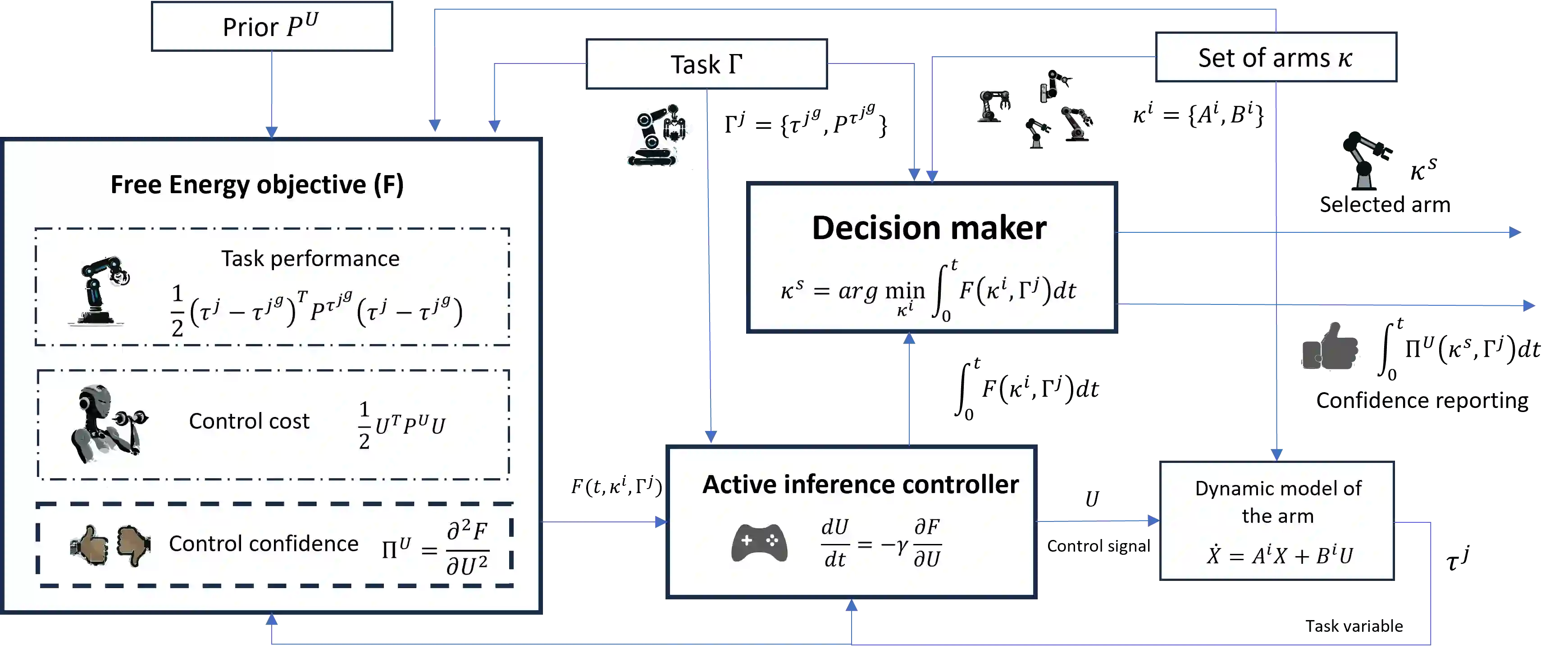 Self-reflecting about our performance (e.g., how confident we are) before doing a task is essential for decision making, such as selecting the most suitable tool or choosing the best route to drive. While this form of awareness -- thinking about our performance or metacognitive performance -- is well-known in humans, robots still lack this cognitive ability. This reflective monitoring can enhance their embodied decision power, robustness and safety. Here, we take a step in this direction by introducing a mathematical framework that allows robots to use their control self-confidence to make better-informed decisions. We derive a mathematical closed-form expression for control confidence for dynamic systems (i.e., the posterior inverse covariance of the control action). This control confidence seamlessly integrates within an objective function for decision making, that balances the: i) performance for task completion, ii) control effort, and iii) self-confidence. To evaluate our theoretical account, we framed the decision-making within the tool selection problem, where the agent has to select the best robot arm for a particular control task. The statistical analysis of the numerical simulations with randomized 2DOF arms shows that using control confidence during tool selection improves both real task performance, and the reliability of the tool for performance under unmodelled perturbations (e.g., external forces). Furthermore, our results indicate that control confidence is an early indicator of performance and thus, it can be used as a heuristic for making decisions when computation power is restricted or decision-making is intractable. Overall, we show the advantages of using confidence-aware decision-making and control scheme for dynamic systems.