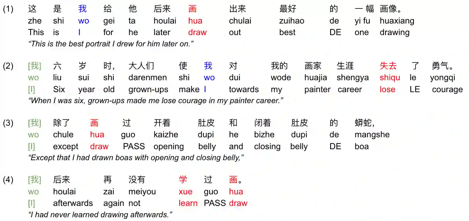翻译:在中文主题连锁理论的启发下,本研究揭示了字符-动词使用连续性如何将名词与故事字符的公开引用区分开来。我们将选择投放与不投放作为字符-动词连续性的函数。结果显示,省略的科目比非引文的科目具有更高的历史-时动动词连续性。这与以下观点是一致的,即与特定专题如故事字符的一致性话确实有利于在可选语言和背景中遗漏代词。
